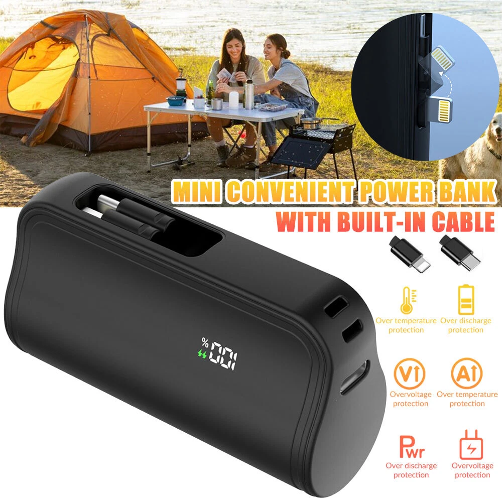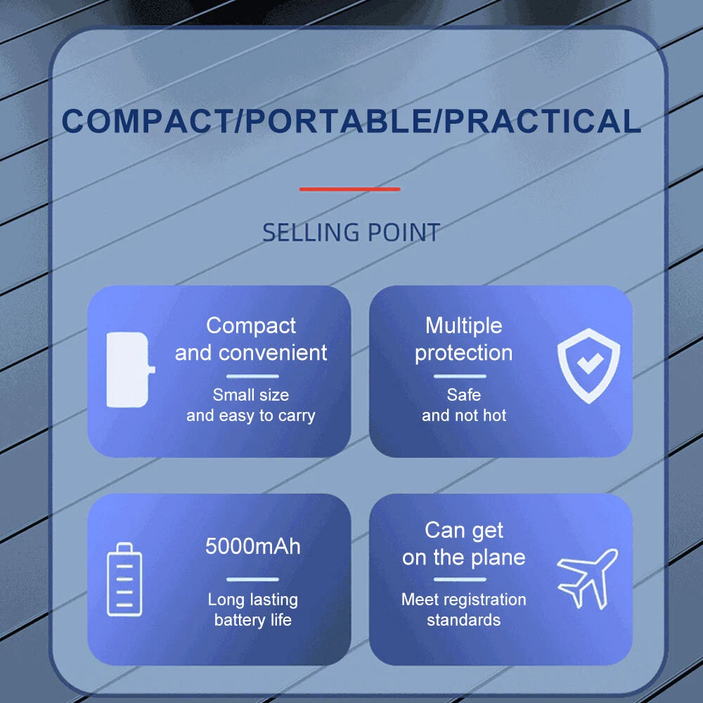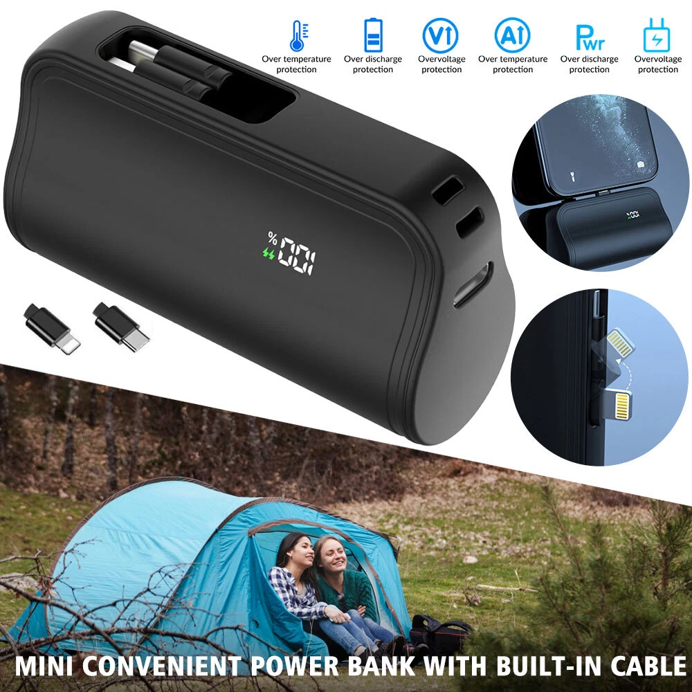Specification: Product type: mini convenient self-wired charging treasure-LCD real power display Product size: 8*4.5*2.7cm USB-C input: 5V/2.4A USB-C charging head output: 5V/2.4A Charger 2 output: 5V/2.4A Battery capacity: 10000AMH Output Connector: for iphone / Type-C Charging power: 5W Battery type: polymer lithium-ion batteries Product shell material: alloy Advantage: Dual Head Hidden Charger; Shrinkable storage compact and easy to carry charging; LCD real power display; Cell phone holder function; Can be equipped with lanyard design; Support Apple 15 & about all cell phones are supported basically; Support 99% market holster; Multiple protection, can be on the airplane Compatible models: For iPhone XS / For iPhone XS Max For iPhone X / For iPhone XR For iPhone 8 / For iPhone 8 Plus For iPhone 7 / For iPhone 7 Plus For iPhone 6 / For iPhone 6 Plus For iPhone 6s / For iPhone 6s Plus For iPhone 5 / For iPhone 5s For iPhone 11 / For iPhone 11 Pro / For iPhone 11 Pro Max For iPhone 12 / For iPhone 12 Pro/ For iPhone 12 Pro Max/ For 12 mini For iPhone 13 / For iPhone 13 Pro/ For iPhone 13 Pro Max/ For 13 mini For iPhone 14 / 14 Plus / 14 Pro / 14 Pro Max For iPhone 15/15 Plus/15 Pro/15 Pro Max For AirPods/AirPods Pro For Android Samsung Galaxy/Xiaomi/Google/HTC/LG/Redmi/Oneplus and other Type C devices Package included: 1/2 x mini power bank