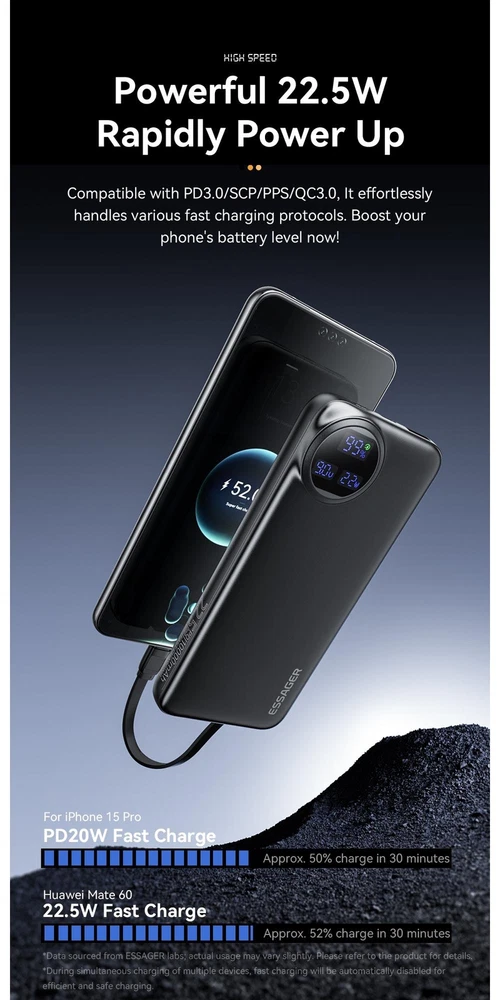 Free and fast shipping , shipping take up 1-7 Business Days 30 Day Return Accepted EASY PAYMENT via PayPal, Credit Card, PayPal Credit, Google Pay... Power Bank 20000mah Mobile Phone Plastic Medium Black 1-usb 5v Backup 22.5w Product Parameters: Name: 22.5W digital display with cable mobile power supply Model:ES-D016 Product Size: 149.5*67*17.5mm Product net weight: 190g Material: ABS+PC REVIEWS The product came very well packaged. I'm very happy. thank you for everything. Seller strongly recommended. This is great! I definitely recommend! Product looks amazing Delivery was fast. Excellent seller, great communication. I advise everyone to buy it!
