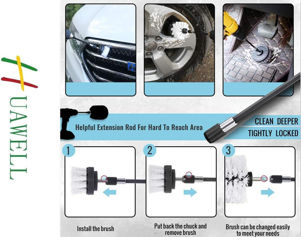Store New Arrivals Add to Favorite View Feedback Contact Drill Brush Power Scrubber Cleaning Brush with 2 Extended Attachment Set Kit for Bathroom Tub, Tile, Floor, Grout, Boat and Kitchen Surface (White) Description Item model number H836587-009 Unit Count 1.0 Count Number of Items 8 Color White Material Leather,Nylon,Vinyl Country of Origin China Handle Material Plastic Item Weight 2.4 pounds Shape Round Surface Recommendation Floor,Tile,Tub Included Components Attachment Special Feature Premium Product Dimensions 8"L x 5"W x 6"H What You Get : 9 Pcs different sized brush heads(3 pcs 4" round flat brushes, 1pc 5" round flat brush,2 Pcs 5.5" flat brush 1 Pcs 2" round flat brush,1 Pcs 3.5'' round brush, 1 Pcs rim brush) and 2pc extended long attachment. Brush heads of different shapes and sizes enable you to finish almost all household cleaning tasks. Drill NOT included Soft Bristle: White soft drill brushes are made of premium soft nylon bristles which suitable for a carpet, fabrics, wheels, upholstery, glass, leather, vinyl, etc Extended Attachment: Extended reach attachment have the slip joint and magnet, it can allow you to get into tight spaces and hard to reach areas for a thorough clean 1/4" Quick Change Shaft : Fit most of the DRILL Warranty: High qualtiy with 90 days no question warranty. If you have any prolem, Glad to hear from your side. Our after-service department will reply you wtihin 12 hours, or re-send you, it's up to you. Product Description Specifications: Item name: HUAWELL Drill Brush Attachment Set Material: High quality nylon bristles and plastic Size of quick change shaft: 1/4" High quality materials: 1. The bristles are made of brand new PP material, which has high resilience and will not easily deform. 2. The brush chassis is made of high-strength material, which is not easy to damage or explode. 3. The connecting rod has undergone special processing and is not prone to corrosion and detachment. ABOUT US We offer the best prices around on high quality products. Our E-store includes media such as books, movies, music and games while offering electronics, toys, sporting apparel, clothing, tools, general home, garden items and more. SHIPPING We are always working hard to ensure your package arrives as soon as possible. Please understand that some factors like weather, high postal traffic, and the performance of shipping companies are outside of our control. We offer free shipping to the lower 48 states and ship within 2 business days of payment, usually sooner. We do not accept P.O. Boxes. Please provide a physical address. For shipping outside of the continental USA, we only use eBay's Global Shipping Program.The item is shipped to KY and then sent to the rest of the world. International customers are responsible for all duties and taxes. Continue to check out in order to calculate costs for shipping the item to your country. Messages regarding eBay's Global Shipping Program MUST be directed at eBay EXCLUSIVELY. RETURNS We offer a 30-Day Return Policy on items which you are not completely satisfied with. You have the option for a full-refund or an exchange of the item. No returns are available on items shipped outside of the USA. PAYMENT We accept PayPal. CONTACT US This page content is yet to come Please ad us to your favorite seller and visit again later Thank You CUSTOMER SATISFACTION We try our very best to make sure every customer is completely satisfied. If there's a problem, message us! We're happy to help. WE ACCEPT Copyright © 2021 AutoDS. | All Rights Reserved