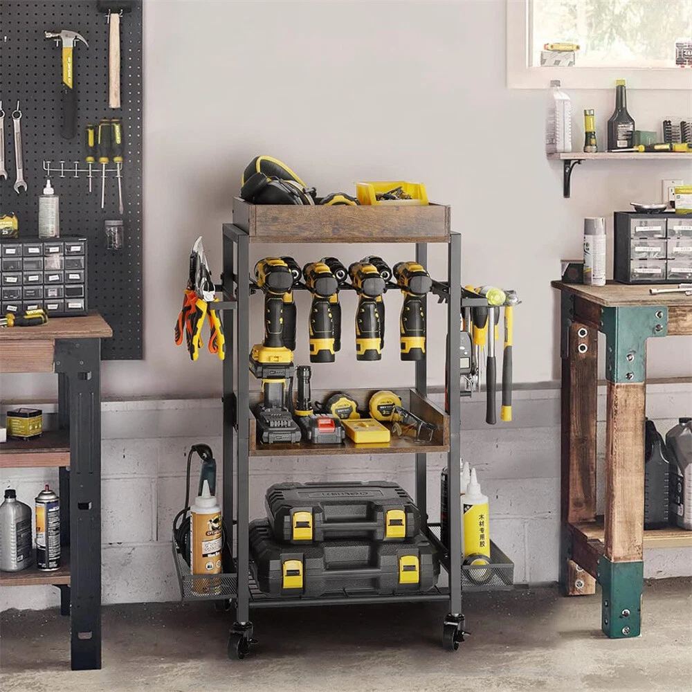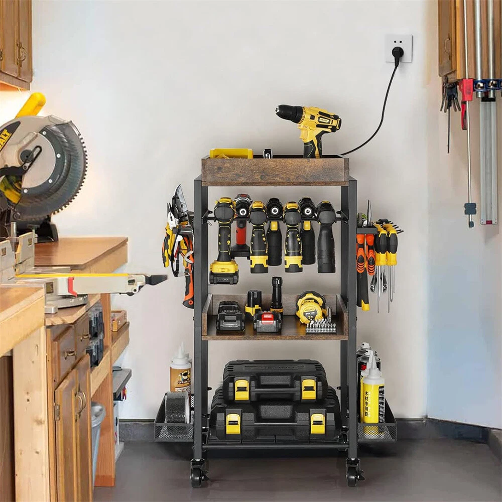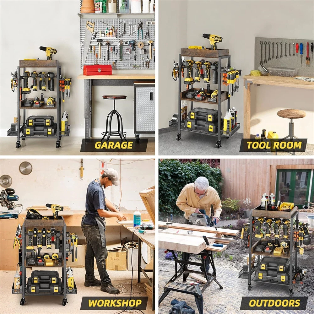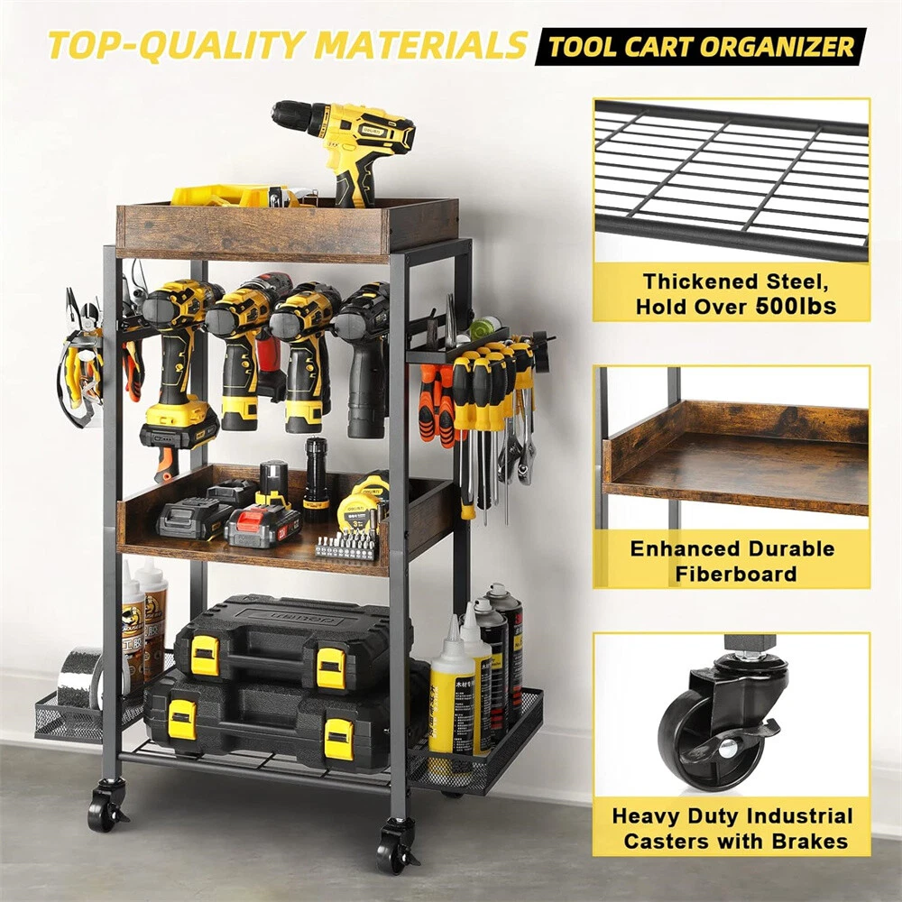 Power Tool Organizer Garage Storage Shelving Tool Holder Rolling Cart Drill Rack Power Tool Organizer Garage Storage Shelving Tool Holder Rolling Cart Drill Rack US WAREHOUSE & FAST SHIPPING Feature: 【Multifunctional Organizer Cart】 Consisting of 3 trays, 2 side mesh shelves, 2 screwdriver holders and drill rack, this cart holds a wide variety of tools, keeping them organized and easily accessible wherever needed, its versatility make it a a flexible solution for any workshop 【Power Tool Storage】 This trolley provides ample storage space for variety if power tools, toolboxes, screwdrivers, hammers, wrenches, tweezers, built-in drill holder to store and access your drills, keeping them readily available for when you need them, it also has side shelves for putting various smaller tools or accessories 【Rolling Cart】 This storage cart is outfitted with smooth-rolling casters, making it easy to move around your workspace, two are lockable for safe stop and stay in place, and ensure that you can position your tools where you need them, promoting a more efficient working space 【Versatile Trolley】 This item will be very valuable to people that have a ton of different tools and need space to organize everything in the workshop, garage, or workbench, home, besides a tool cart, it also can be a kitchen storage for various spices seasonings, (remember to detach the screwdriver holder on the both sides when used as kitchen storage) Specifications: Type: Tool Organizer/Compartment Box Features: With Wheels, Multifunctional Mounting: Free Standing Material: Iron + MDF Board Color: Rustic Brown & Black Net Weight: 8.4kg/ 18.52 lbs Product Dimension: L * W * H 62x30.5x88cm/ 24.41x12x34.65 inch Package Includes: 1 x Power Tool Organizer Cart 1 x Instruction Guide 1 x Screws Set Payment Delivery details Terms of sales About us Contact us Payment Delivery details We ship orders within 24 hours of payment. Orders are shipped daily Monday - Friday Orders are shipped through USPS and FedEx, normally take 3-6 days to arrive! Terms of sales Pls contact us if there is any problems with your order via ebay message. we will try our best to resolve it to your satisfaction! About us We are a store, mainly run home garden kitchen items, also, we are professional makeup case factory. We work with a good quality OEM supplier and factory. Help you and us save money greatly. Contact us If you have any questions or any helps, pls feel free to contact us via ebay message. We will reply back to you in 24 business hours. Brand UNHO Type Tool Holder Material Iron + MDF Board Size Large Number of Items 1 Model Garage Tools Storage Cart MPN DFGJ74RY34834 Capacity 45 kg Features Scratch Resistant Color Brown & Black