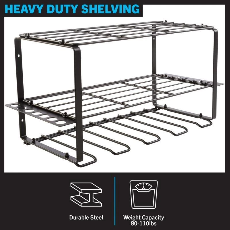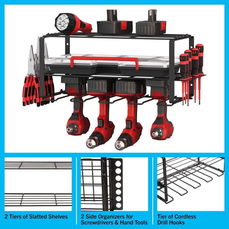 You may also like Plastic Garage Shelves 4 Tier Storage Rack Heavy Duty Interlocking Shelving Unit 63.97 USD Free shipping Freestanding 5 Tier Boltless Storage Shelf Unit Adjustable Balcony Kitchen New 57.58 USD Free shipping Plastic Storage Shelves 48"x21"x14" 200lb Capacity Organize Goods Ready New 58.73 USD 61.82 USD Free shipping 5% off 5-Shelf Plastic Garage Storage Unit Easy Assembly 350lbs Capacity Durable Design 63.49 USD Free shipping 5-Tier Heavy-Duty Adjustable Steel Storage Shelving Unit Commercial Use 143.16 USD 150.69 USD Free shipping 5% off 3-Tier Metal Wire Rack Free Standing Shelving Unit Adjustable Heavy Duty Storage 86.4 USD Free shipping Rail Shelving Kit Wire Shelves Storage Heavy Duty Basements Garage Laundry Room 128.0 USD Free shipping 5 Tier Shelf Heavy Duty Steel Storage Unit Rack Kitchen Office Garage Adjustable 89.58 USD Free shipping Adjustable Shelving Utility Cart Steel Storage Organizer 3-Tier home All Purpose 65.58 USD Free shipping Overhead Garage Ceiling Storage Racks Wire Steel Workshop Basements 250 Lbs New 158.4 USD Free shipping 4-Shelf Heavy Duty Steel Shelving Unit Adjustable Storage Rack Home Office New 64.0 USD Free shipping Heavy Duty Plastic Storage Shelves 3-Tier Freestanding Unit Tool-Free Assembly 79.98 USD Free shipping Keeping your workshop, basement, or shed tidy and organized is easier than ever with the Garage Tool Organizer Wall Mount by Stalwart. This garage organizer is constructed from sturdy steel, with 2 tiers of heavy duty storage shelves, 2 side organizers for screwdrivers and other hand tools, and a tier of storage hooks perfectly sized for storing cordless tools like drills, so there’s a place to stash a wide range of hand and power tools. Stalwart’s versatile and durable line of tool box organizers and storage shelves make great Christmas, anniversary, or Fathers Day gifts for any handy guy. TOOL ORGANIZER - The Stalwart power tool organizer wall mount unit features 2 tiers of slatted shelves, 2 side organizers for screwdrivers and other hand tools, and a tier of cordless drill storage hooks. HEAVY DUTY SHELVING - The unit is constructed of durable steel and has a maximum total weight capacity of 80 to 110lbs depending on the load-bearing wall, and the drill holder has a capacity of 30lbs. VERSATILE STORAGE - The shelves can hold a variety of items from tool boxes to round saws, while the additional storage hooks and side shelves provide space for small hand tools and cordless power tools. EASY ASSEMBLY - Installation instructions, mounting hardware, and assembly tools are included, and the garage storage rack can be installed on pegboard, concrete, brick, or wood studs. You may also like Heavy Duty 50' Extension Cord 12 Gauge 3 Outlet Lighted End Weather Resistant US 50.54 USD 53.2 USD Free shipping 5% off Camping Table Adjustable Height Folding Portable Picnic Outdoor Aluminum Silver 93.76 USD 98.69 USD Free shipping 5% off Office Chair Mat Hard Floors Anti Slip PVC Desk Floor Protector Gaming Rug New 62.82 USD 66.13 USD Free shipping 5% off Durable Wood Bamboo Cutting Board Deep Juice Grooves Built-in Handles Kitchen 48.09 USD Free shipping 5 Ft Sun Shade UPF 50 Beach Umbrella Portable Lightweight Travel Friendly Blue 77.08 USD 81.14 USD Free shipping 5% off Microfiber Bathroom Rug Set 3 Piece Ultra Soft Non-Slip Absorbent Mats New 45.02 USD 47.39 USD Free shipping 5% off Milkyway Design 12-Piece Dinnerware Set 4 Scratch Resistant & Lead-Free Glaze US 83.02 USD 87.39 USD Free shipping 5% off Bamboo Shower Bench Stool Storage Shelf Waterproof Durable Indoor Outdoor 2 Tier 54.52 USD 57.39 USD Free shipping 5% off 112 Piece Cordless Power Tool Set W/ 21V Drill Fast Charger Ergonomic Design New 90.15 USD 94.89 USD Free shipping 5% off C Shaped Sofa Side Table W/ Drawers Storage Wheels Basket Multifunctional Design 47.55 USD 50.05 USD Free shipping 5% off Electric Warming Mat 7 Temp Settings Auto Shut Off Silicone Heating Tray Timer 59.27 USD 62.39 USD Free shipping 5% off Heavy Duty 100 Ft Outdoor Extension Cord Lighted End 12AWG Waterproof 15A Orange 85.79 USD Free shipping