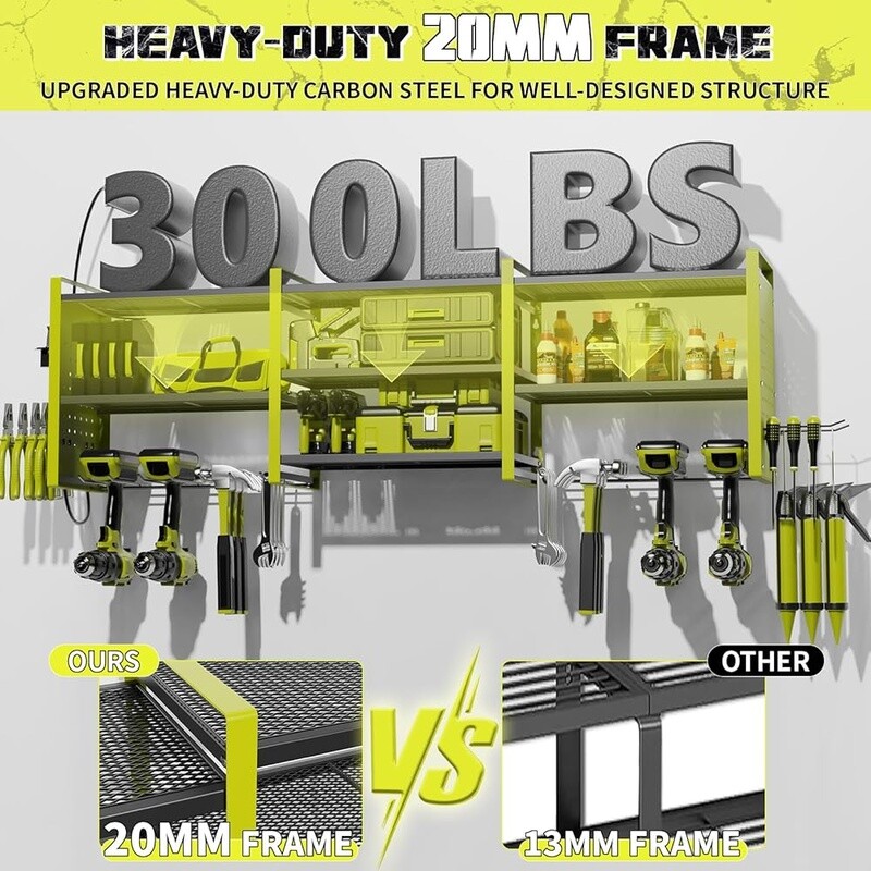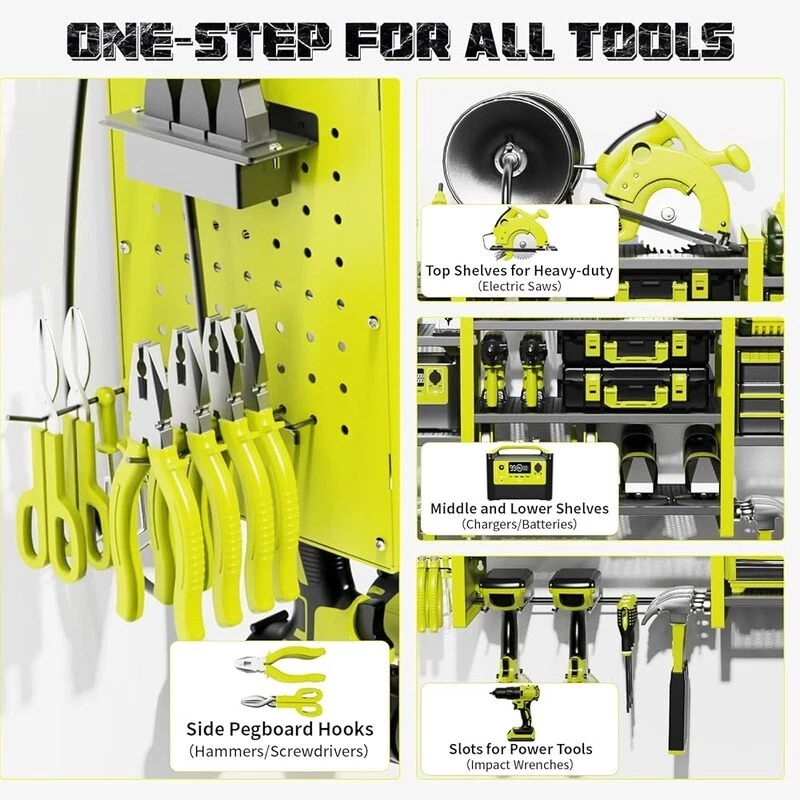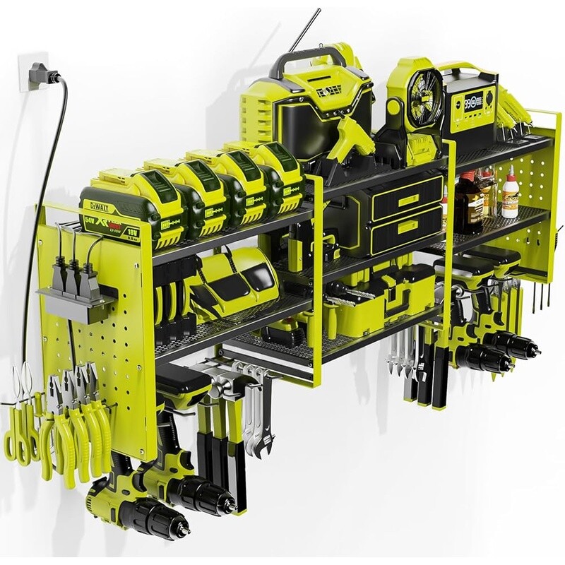 You may also like Garage Tool Organizer Wall Mount Heavy Duty Rack W/ 9 Hooks Adjustable Storage 42.73 USD 44.98 USD Free shipping 5% off 12 Employee Appreciation Gifts Tumblers Makeup Bags Pens Thank You Gifts Set New 83.11 USD 87.48 USD Free shipping 5% off Carbon Steel Frying Pan Beech Handle Glass Lid Induction Non-Stick Skillet New 94.98 USD 99.98 USD Free shipping 5% off Towel Warmer Bucket Spa Experience Customized Fragrance Auto Shut Off Heater New 100.92 USD 106.23 USD Free shipping 5% off Enameled Cast Iron Dutch Oven Pot W/ Lid Baking Stews Roasting Frying Cooking US 94.98 USD 99.98 USD Free shipping 5% off Nonstick Electric Griddle Cooking Surface Pancakes Tacos Temperature Control New 66.48 USD 69.98 USD Free shipping 5% off 3-Tier Shoe Rack Bench W/ Cushion Entryway Storage Organizer Durable Iron Frame 83.11 USD 87.48 USD Free shipping 5% off Stone Bath Mat Set Quick Dry Absorbent Non-Slip Kitchen Dish Drying Mat 2 Pack 42.73 USD 44.98 USD Free shipping 5% off 2 Pcs 11" Artificial Topiary Ball LED Light UV Fire Retardant Outdoor Decor New 94.98 USD 99.98 USD Free shipping 5% off Rolling Cleaning Tote Bag W/ Detachable Trolley & Multi Compartment Organizer US 85.42 USD 89.92 USD Free shipping 5% off Oversized Turkish Beach Towel Sandproof Quick Dry Portable Picnic Blanket Blue 42.73 USD 44.98 USD Free shipping 5% off Bamboo Dish Drying Rack 2-Tier Design Quick Drying Stone Mat Kitchen Setup New 42.73 USD 44.98 USD Free shipping 5% off About this item Expanded Width to Maximized Storage: The power tool organizer wall mount with charging station features a patented wide design in its 2 central shelves, perfect for storing more tools, especially longer items like chainsaws. Measuring 45. 6" wide, 16. 5" high, and 8. 7" deep, this sturdy and space-efficient power tool storage rack keeps your tools organized Versatile Garage Storage Rack: The top shelf holds heavy-duty tools like electric and miter saws, while the middle and lower shelves fit medium-sized items like chargers, batteries, and toolboxes. The 5. 4-inch side pegboard hooks keep hammers and screwdrivers organized and accessible. This wall-mounted garage organization saves floor space, transforming a cluttered area into an organized workspace. Note: Tools shown are for display only and are not included Stable Structure with High Load Capacity: Made from heavy-duty upgraded carbon steel, this wall-mounted tool organizer is strong, stable, and resistant to deformation, supporting up to 200 lbs (40 lbs per shelf). It features easy assembly with included Phillips screws and screwdriver for a hassle-free installation Power Tool Organizer with Charging Station: Position outlets on either side to keep your tools charged. The American-standard power strip (Output: 125V/12A/1500W) provides device protection, frees up top-shelf space, and clearly displays power status. Includes a 6. 56 ft power cord for easy setup Perfect Gifts for Men: This versatile tool organizer can be installed on pegboard, wood, concrete, or drywall, making it ideal for garages, tool rooms, workshops, and factories. Great Christmas and birthday gift for fathers, husbands, and DIY enthusiasts › Material: heavy-duty carbon steel Color: Green Special Feature: Extra Height Product Dimensions: 16. 93"D x 9. 84"W x 5. 51"H Shelf Type: Wall Mount You may also like Cordless Caulking Gun Battery Powered 21V Electric No Drip 4 Speed 300ml New 45.11 USD 47.48 USD Free shipping 5% off Carbon Fiber Nylon Filament 1.75mm PA6 CF 3D Printer Industrial Engineering 1kg 54.99 USD 57.88 USD Free shipping 5% off Portable Steam Sauna Home Spa Full Body Tent W/ 1500W Steamer Remote Chair New 78.95 USD 83.11 USD Free shipping 5% off Rechargeable Wall Mounted Lighted Makeup Mirror 10X Magnifying 3 Color Lights US 45.04 USD 47.41 USD Free shipping 5% off 15 In Cast Iron Skillet Nonstick Versatile Cookware Assist Handle Oven Safe New 56.32 USD 59.28 USD Free shipping 5% off Rechargeable Wall Mounted Makeup Mirror 8 Inch Dual Sided 1X 10X Dimmable Light 53.57 USD 56.39 USD Free shipping 5% off Simple Design Computer Writing Desk W/ Shelves Durable Compact Easy Assembly New 60.41 USD 63.59 USD Free shipping 5% off 2-Slice Toaster Extra Wide Slots Bagel Function Breakfast Kitchen Appliance New 27.92 USD 29.39 USD Free shipping 5% off 25Ft 10Gauge Heavy Duty Outdoor Extension Cord Waterproof Lighted End 15Amp SJTW 39.64 USD 41.73 USD Free shipping 5% off 1/4 Drive Impact Socket Set 56 Pieces SAE Metric 6 Point Cr-V Ratchet Extension 46.92 USD 49.39 USD Free shipping 5% off Indoor Panini Press Grill Nonstick Sandwich Maker Easy Clean Healthy Cooking New 27.49 USD 28.94 USD Free shipping 5% off 1500W 6.2Qt Air Fryer 8-in-1 Multi-Function Presets Healthy Low-Oil Cooking New 83.11 USD 87.48 USD Free shipping 5% off