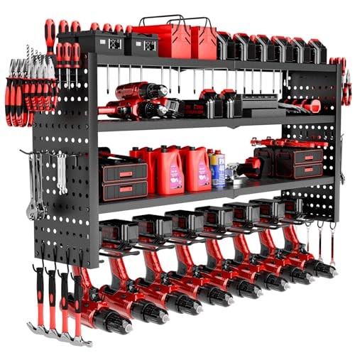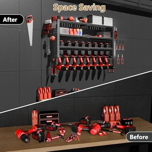 Return Policy Fast Delivery Trusted seller Power Tool Organizer Wall Mount, Heavy Duty 8 Drill 4 Layer Cordless Drill Hanger Pegboard Wall Garage Organizer Tool Organizers and Storage Tool Shelf Rack with Hooks, Screwdriver Rack Product Description Heavy Duty Steel Construction: This power tool organizer is made of heavy duty steel and metal side pegboard, much sturdier than others, supports a maximum weight capacity of 280 lbs on sturdy walls. Constructed from a double powder-coated steel finish, the cordless tool organizer is more rust-resistant, corrosion-resistant and scratch-resistant. Each upwards slot slopes ensure no knocking things off the shelf when grabbing b a tool 【Efficient & Space-Saving Tool Storage】 The wall mount tool organizer designed with 8 drill holders and 4-tier shelf, holds cordless tools, batteries, chargers & accessories vertically to free up counter space. The tool storage rack converts cluttered walls into organized workspace, keeps tools visible & accessible, no need for extra storage systems. Unlike flimsy wire-frame shelves, our The sturdy & adjustable pegboard shelving can be adjusted for much heavier tools of different sizes 【Optimized for All Power Tools & Accessories】This sturdy tool holder comes with 2 side racks and 12 hooks for hammers, pliers, screwdrivers, and box cutters, holds all tools & accessories like drills, impacts, saws, and toolboxes in a center location. Features a top shelf with screwdrivers holes, offers more holders for small parts such as screws, no worrying about missing your small tools 【Quick Installation】The garage tool organizer can be assembled in minutes with included hardware. Simply connect steel frames with screws and mount to your preferred surface like wood/concrete/pegboard. Freely setup side racks make things easier 【Gift For Tool Users】The tool storage organizer can holds plenty of tools, reduces clutter & maximizes space, work wells in garages, workshops, or laundry rooms. Makes exceptional gift for Father's Day, Christmas, or birthdays, or for DIY enthusiasts and professionals Shipping Returns Payment Shipping Shipping is FREE to all addresses other than APO/PO boxes in the lower 48 states. All our stock ships from US-based warehouses. Shipped via USPS or UPS (depending on location and package weight) Unless stated otherwise, all orders will ship within 24-72 hours of your payment being processed. Check our feedback to see the great reviews of FAST shipping we offer. Returns Seller does not accept returns Payment We currently accept payment via eBay managed payments only. Once payment is cleared, we will dispatch your shipment within 1-3 business days. Please refer to the "Shipping" tab for more information regarding shipping speed to your destination.
