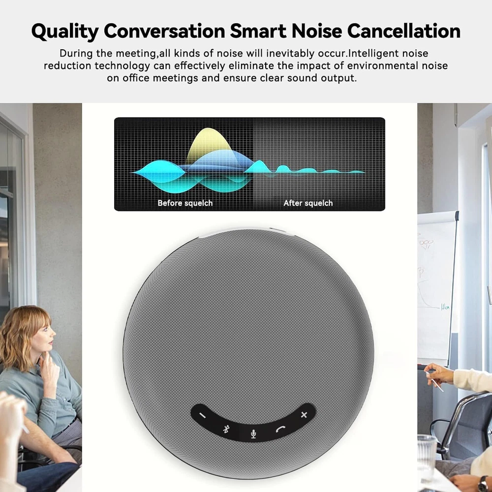 【360°Omni-direction & Long Battery Life】360-degree omnidirectional sound capture , Sound can be picked up evenly from all directions without changing much of the sound characteristics with distance. Up to 12 hours of talk time between charges the Speakerphone outlasts the longest workday. 【4 Array 3 meter pickup range Far Field Mic-Sensor】The HQ Portable Mic Speaker is a premium 4 array microphone that captures high quality audio and provides flexibility in varying A/V Conferencing environments including boardrooms, huddle rooms and multi-purpose spaces. 【Crystal sound quality voice enhancement 】The outstanding sound quality wireless Bluetooth Portable Speaker ensures everyone is heard during conference calls, take audio conferencing to a whole new level. Hold meetings anywhere and turn any room into a conference room with this wireless portable speaker.Use it at home, in the office or when traveling. 【High sensitivity and ambient noise cancellation】Audio Capture / DSP inside, With advanced features like acoustic echo cancellation, noise reduction technology, and intuitive controls, it’s easier than ever to include everyone in the conversation. So you can hear and be heard, even in noisy workspaces. 【All in one】Bluetooth Speakerphone Just connect smartphones via Bluetooth or connect wirelessly to computers via the included adapter. Compatible with systems Windows7/8/10/11, Mac OS High series, Skype/Zoom/GoToMeeting/Google Hangouts/WeChat/LINE and etc.