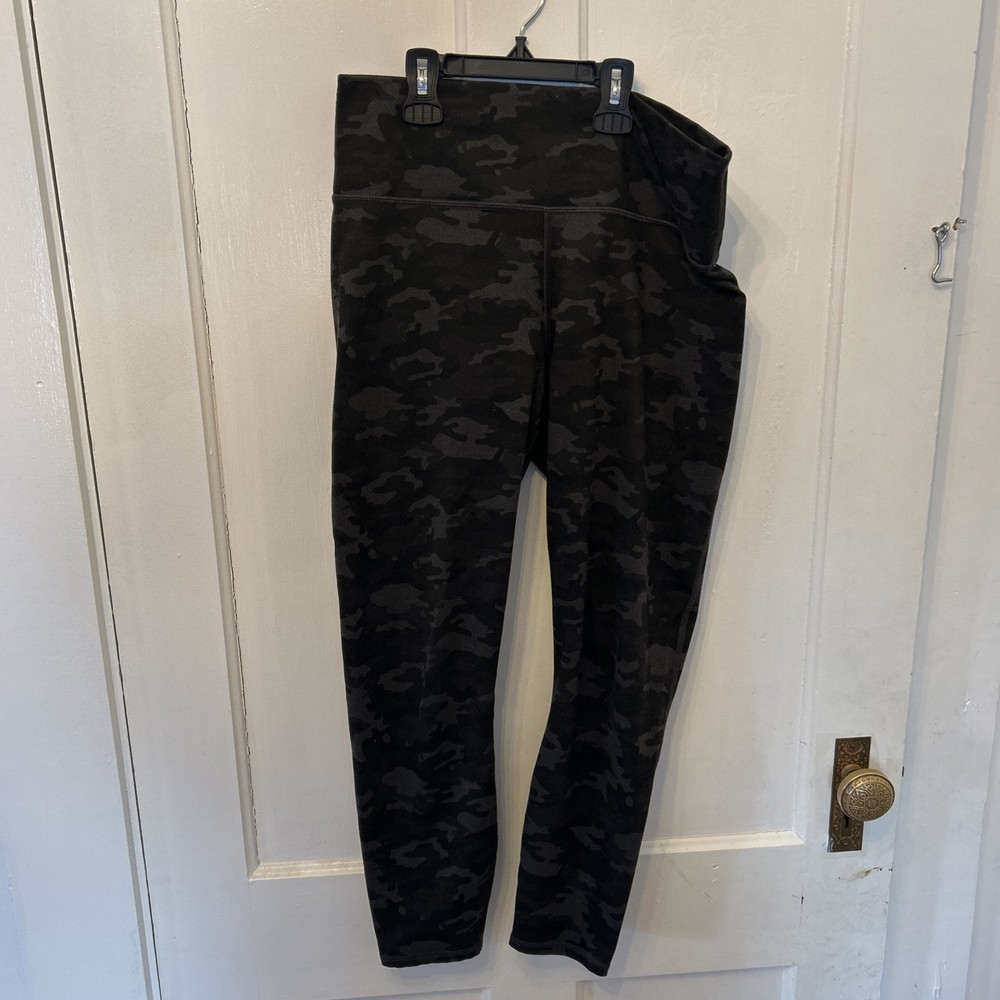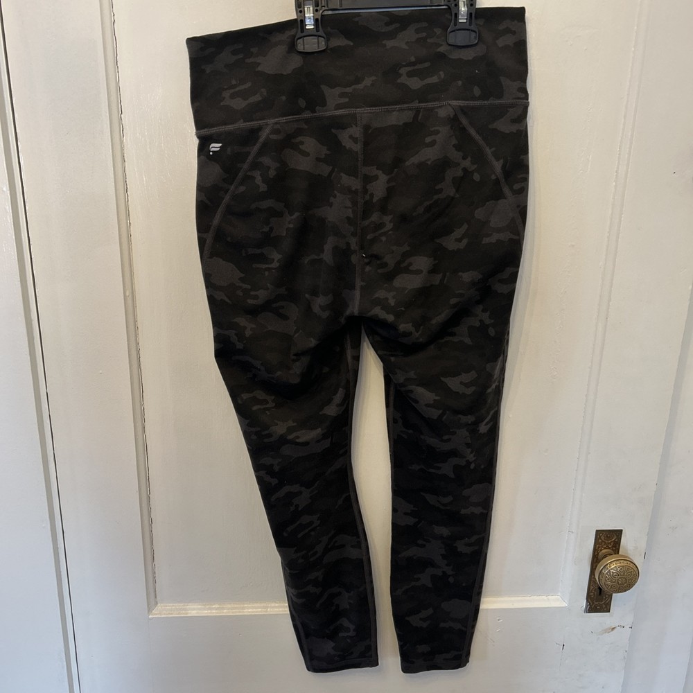 Fabletics cropped high waisted, slimming green camo print leggings in wonderful condition