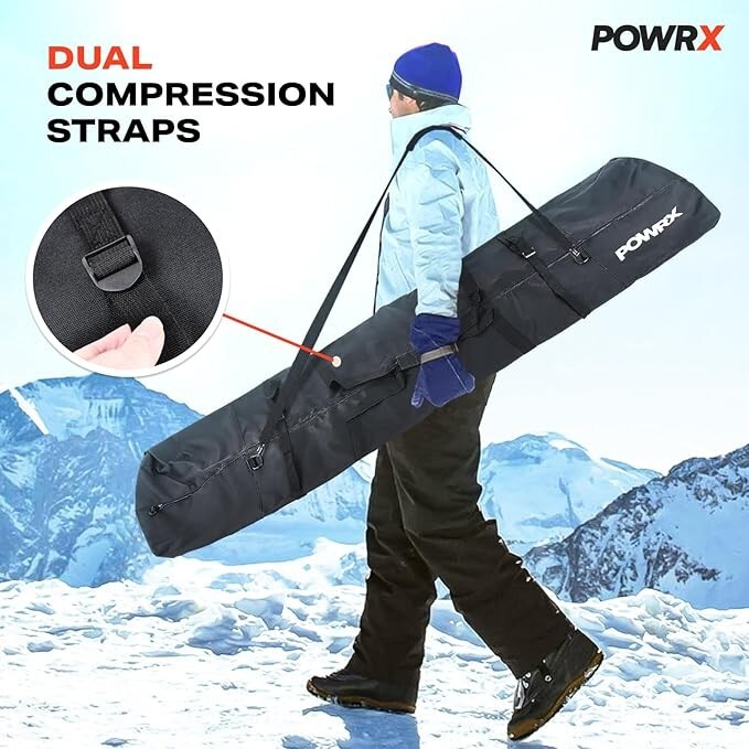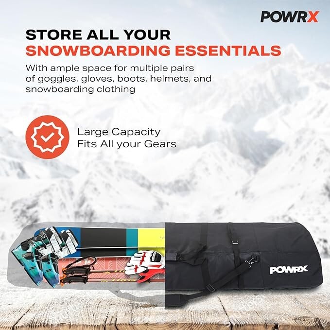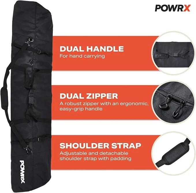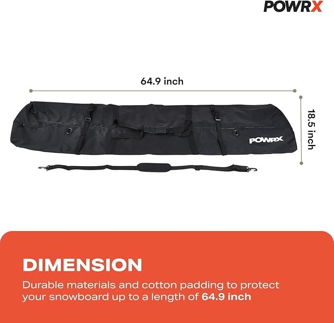 About this item ULTIMATE PROTECTION FOR YOUR GEAR: Our padded snowboard bag is the perfect solution for snowboard travel, offering ultimate protection for your gear during air travel. The bag is designed to accommodate a snowboard up to 66 inches in length, ensuring your snowboard bag for air travel is safe and secure EASY AND COMFORTABLE TRANSPORT: Our snowboard carry bag makes transportation a breeze, whether you're heading to the car or the airport. The snowboard bag travel features detachable shoulder straps, an ergonomic padded handle, and a practical roller system, making it one of the best snowboard travel bags for flying STORE ALL YOUR SNOWBOARDING ESSENTIALS: With ample space for multiple pairs of goggles, gloves, boots, helmets, and snowboarding clothing, our snowboarding bag is the perfect choice for athletes on the go. It's more than just a snowboard bag, it's a complete storage solution for all your snowboarding essentials VERSATILE AND CONVENIENT DESIGN: Our snowboard bag is designed to fit snowboards with bindings, plate bindings, and even sets of skis. This snow board bag is the ultimate travel companion for winter sports enthusiasts, offering versatility and convenience in one package THE BEST TRAVEL COMPANION FOR SNOWBOARDING: Our snowbaord bag is the best way to travel with your gear, providing both functionality and style. Perfect for girls and boys, adults and kids, it's the ultimate accessory for your next winter adventure.