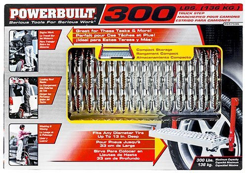 EASY TO USE: Slip this Heavy-Duty Truck Step over your vehicle tire, then reach your roof rack, engine bay, truck box, lumber rack, luggage, and bike without overreaching VERSATILE: The universal and height-adjustable design means it will fit car tires, truck tires, RV tires, even semi-truck tires (we tested it, it fits perfectly!) with a cross width of 13 inches or less at the tread SAFETY: The open design lets mud, slush, and debris pass through and the metal cheese grater surface with anti-slip tape strips offer incredible grip in the best and worst conditions EASY STORAGE: The folding design makes it easy to stow behind a seat, in a truck box, or RV storage bin SIZE AND CAPACITY: Platform is 8-3/4 inches x 21-3/4 inches with a 300-pound weight capacity Great for washing and waxing, loading roof racks, engine service and more Fits any diameter tire up to 12" deep On Sep 20, 2025 at 00:55:04 PDT, seller added the following information: On Nov 21, 2025 at 23:29:48 PST, seller added the following information: