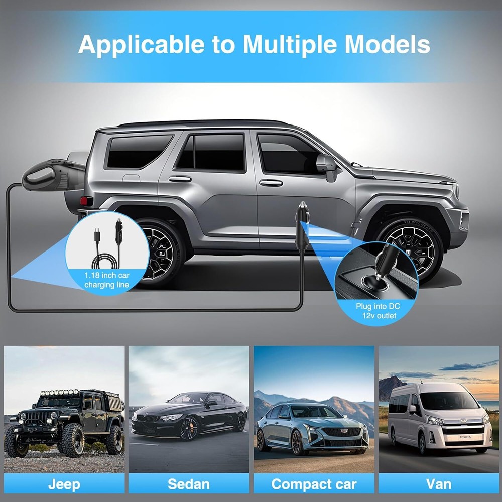 Car Vacuum,Portable Vacuum Cleaner with 11000PA Suction,DC 12V,0.5L Black Product Details Brand: suvnufk Special Feature: Car vacuum Filter Type: Cloth Included Components: Fan Blade included Capacity: 1 Pounds Form Factor: Handheld Color: Black Model Name: XCQ-001 Product Dimensions: 1"L x 1"W x 1"H Manufacturer: suvnufk Number of Items: 1 Style: English Item Weight: 1 pounds Item model number: XCQ-001 Batteries: 1 Lithium Ion batteries required. (included) Batteries required: Yes Surface RecommendationPower Source: CarpetDC VoltageItem Weight: 12 Volts16 ounces High-Powered Suction, Ideal for Daily Car Cleaning: This 12V DC car vacuum provides strong suction to quickly remove dust and debris from carpets, seats, and door mats, keeping your car interior spotless. Comprehensive Attachments for Deep Cleaning: Comes with various nozzles, including a brush and crevice tool, designed to tackle every corner and crevice within the car, ensuring no area is left uncleaned. Long Power Cord for Full Vehicle Coverage: The extended power cord connects to your car’s 12V outlet, reaching every part of your car, from the backseat to the trunk, ensuring a thorough clean. Portable Design, Perfect for On-the-Go: Compact and lightweight, easily stored in your car’s compartments, ready for use whenever and wherever you need a quick clean. Low-Noise Design for a Quiet Operation: Built with noise-reduction technology, this vacuum operates quietly, creating a more pleasant cleaning experience without disturbing the calm of your car. Ideal for maintaining a peaceful atmosphere during and after cleaning.