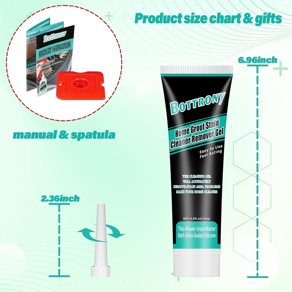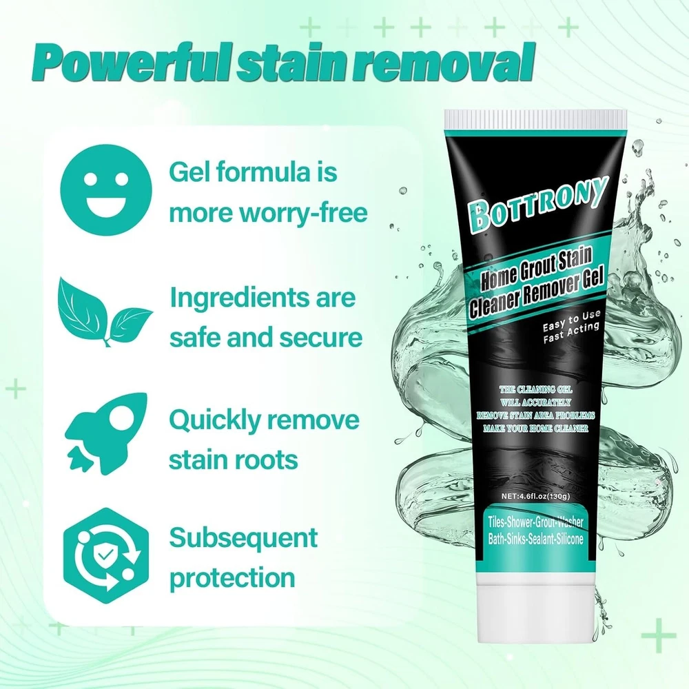 RAPID ACTION: Bottony home stain remover gel offers the perfect solution for stubborn stains. Simply apply the magical cleaner gel and wait 3-6hours to witness it effortlessly eliminate black stains from every nook and cranny of your home, without the need for strenuous scrubbing or sanding EASY TO USE: Squeeze home stain cleaner gel to the place where the black stain gather as required, apply it evenly with a red applicator, and then wait 3-6 hours to clean it with clean water or dry cloth WIDELY USED: Bottony home stain cleaner remover gel can be used in refrigerators, front loading washing machine silicone sealants, kitchen sinks, showers, bathroom sinks, tile grout, silicone sealants, sinks, washbasins, and toilet bowls, bathtubs, verandas, ceramic tiles, window frames, and more. This household cleaning gel will fulfill many of your cleaning needs EFFECTIVE CLEANING: Bottony home stain cleaning gel adheres securely to any surface, even on vertical and inclined surfaces, without dripping. This black stain cleaner for washing machines provides an effective solution for tackling any household cleaning challenge PROTECT HEALTH OF FAMILY: Our home stain cleaner gel can keep your home clean, keep you and your family away from black stain, and protect your and your family's health