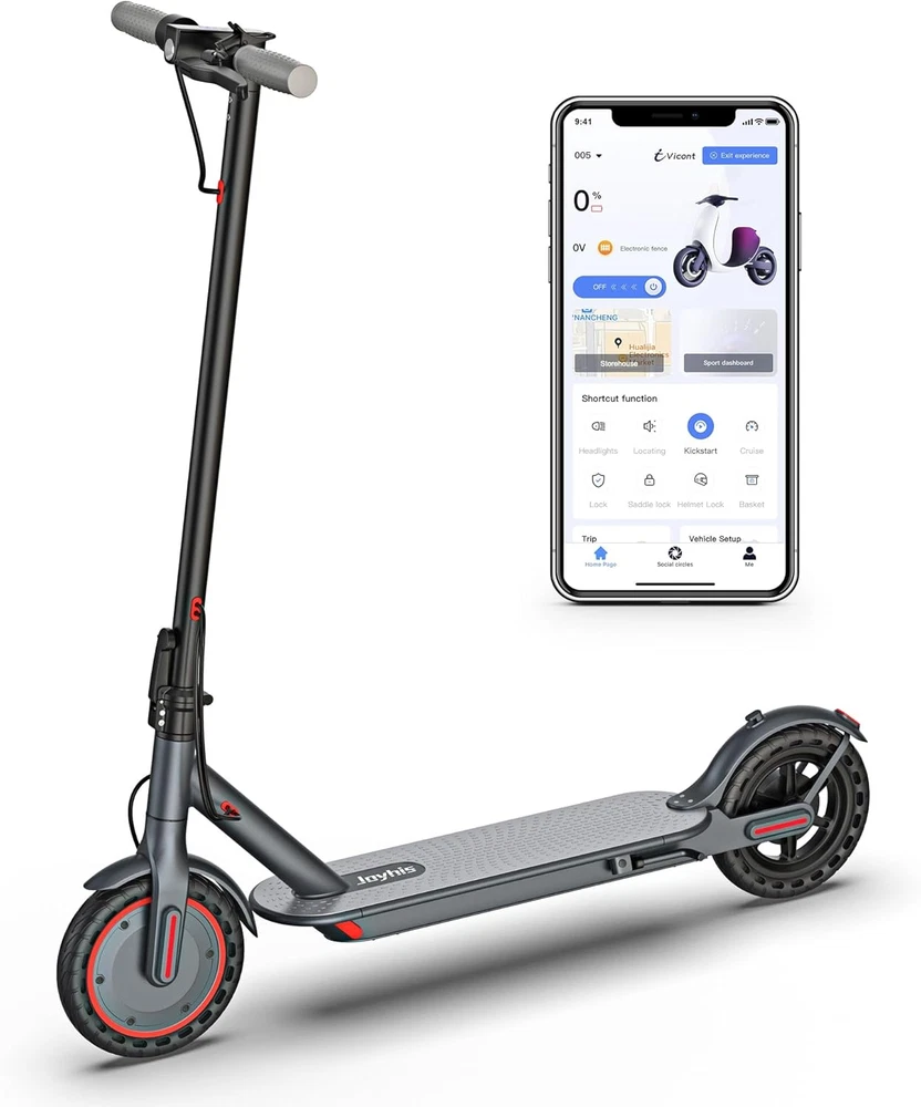 【Great Performance】 Cost-Effective Electric Scooter, is a good partner for short trips and daily commuting. 350W powerful E-scooter Motor offers a maximum speed of 19mph. Designed to support max loads up to 264 lbs. It is certified to UL2272. 【Long Battery Life and Safe】 With high capacity lithium-ion battery, The JS03 adult electric scooter quick charging time is within 5 hours, it has a battery that will last up to 15-22 miles (Please note: it's depends on different speeds, road conditions and rider's weight). To prioritizing your safety, it features double braking system, including disc braking and EABS regenerative anti-lock braking, and warning taillights and ultra-bright headlights. 【Smart App Control and Less Hassle】Simply pair electric scooter APP with your smartphone, Selecting riding modes, light system, speed level, cruise control, start mode and scooter status display ect. With 8.5 inches Maintenance-free solid tires. Honeycomb solid tires are designed to make riding more convenient and less hassle. One-stop solution, full control, bring more convenience to your riding. 【Portable Folding Design】JS03 electric scooter adults has One-step folding design. Weighing only 27.55 lbs, it's compact enough to fit in a car trunk, offers convenience for storage and transport. perfect for city commutes, campus travels, and office commutes. Elevate your outings with this lightweight electric scooter. 【Care & Warranty】Please be sure to charge your scooter fully before first usage. Don't skip this as it's important and prolongs the life and capacity of your battery.When using e-scooter - please take extra care and wear some protective gear.Our JOYHIS electric scooters offers 12-month or 180-day for different parts. If you have any problem please feel free to contact us, we will respond to you within 24 hours and do our best to help you out! electric scooter