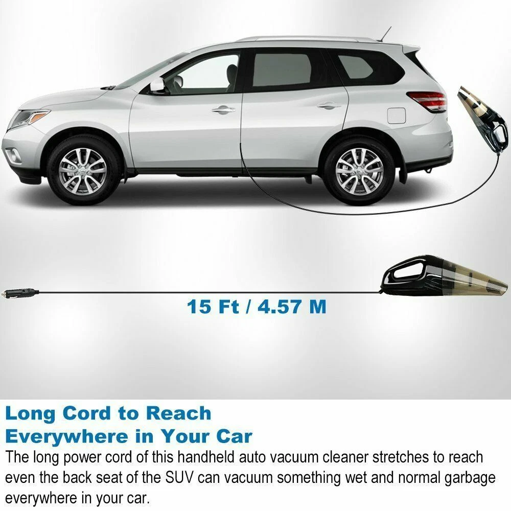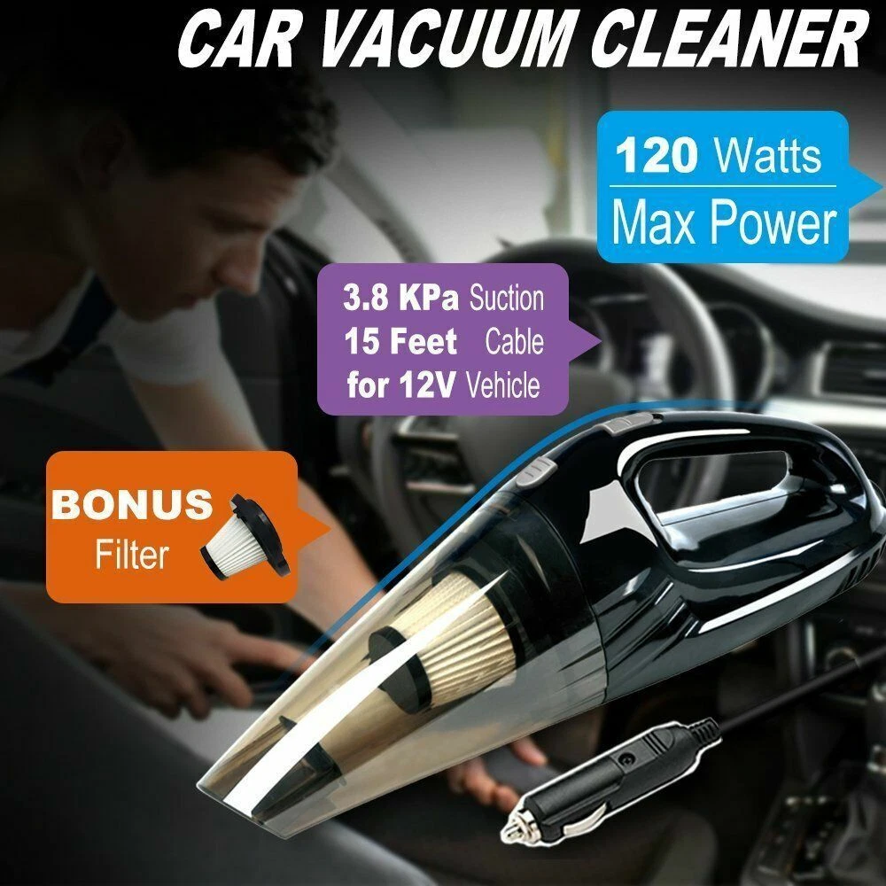 Description: Multi-purpose accessories, accessories with a variety of brush heads, can clean every corner of the car seat, gaps, floor mats, trunk Strong suction seconds to clean, can absorb all kinds of debris, coins, soot, water stains, etc. 120W high power, automatic adjustment motor, long-term use does not heat, good stability Low noise operation, double noise reduction, quiet vacuuming, 4 meter extension cable, more convenient to use. When the vacuum cleaner is not working,please check the plug is in good contact,check the plug fuse is it disconnected? The vacuum cleaner can only use DC power 12V,and it must not use other power sources. Vacuuming can not be used continuously for more than 15 minutes,they need to be suspended for 1 to 2 minutes to continue to continue their use,otherwise it is easy to burn out the motor. To clean the vacuum cleaner filter,otherwise it will affect the vacuum effect. The filter can be cleaned and used repeatedly. Features: Type: Car Vacuum Color: black Vacuum cleaner voltage: 12V Power: 120W Power cord: 4M Size: length 39* width 11* height 9 (cm) Style: cigarette lighter battery Extension cord accessories: flat mouth suction / EVA hose / brush / connector Package Includes: 1 X Car Vacuum 1 X Car Charger 1 X EVA Hose 1 X Brush Nozzle 1 X Flat Mouth suction 1 X Straw Connection Welcome to my e B a y store If you are interested in this product, please add it to your cart and we will send you an email when we have a major offer. Thanks! Please note that due to differences between computer monitors, colors may not be exactly the same as in real life. NOTE: This clothing size information is just for reference only,please allow 2-3cm (2.54cm=1inch) differences due to manual measurement. Promotions / Discounts There is currently an in-store promotion where you will automatically receive a 5%-20% discount when you purchase 2 or more items from the list or from our store. Shipping l We ship worldwide. l Items will be shipped within 1-2 business day after payment is received. l Items are shipped by USPS - First Class Package (Standard 3-5 Business Days) business days. Delivery time depends on destination and other factors, it may takes up to 10-20 business days. If could connect us if package delay. Returns l All items can be returned within 30 days of receipt. l Please make sure this is the item you want before you buy. Customer satisfaction is our top priority. l Return shipping costs are borne by the buyer Payment l We only accepting payment through Paypal, apologize for any inconvenience. l All major credit cards are accepted through secure payment processor PayPal l Payment must be received within 7 business days after your bid. l If you've bought multiple items from me, please connect me resend the invoice to save postage. Communication and Feedback. l Your five-star reviews help us grow and improve our business, and help us keep eBay fees down. Please give us positive feedback when the item arrives and you are satisfied. l Please contact us before leaving any neutral or negative feedback. We always consider our customers to be our number one asset. Please feel free to let us know if there are any problems or inquiries with an item and we will take care of it for you. so that we can resolve the issue in the best way possible without having to open a case through eBay and without negative feedback. l We will leave (100%) positive feedback as soon as payment is received. l We will reply all your questions within 24 hours. On Jan 14, 2026 at 03:24:43 PST, seller added the following information: