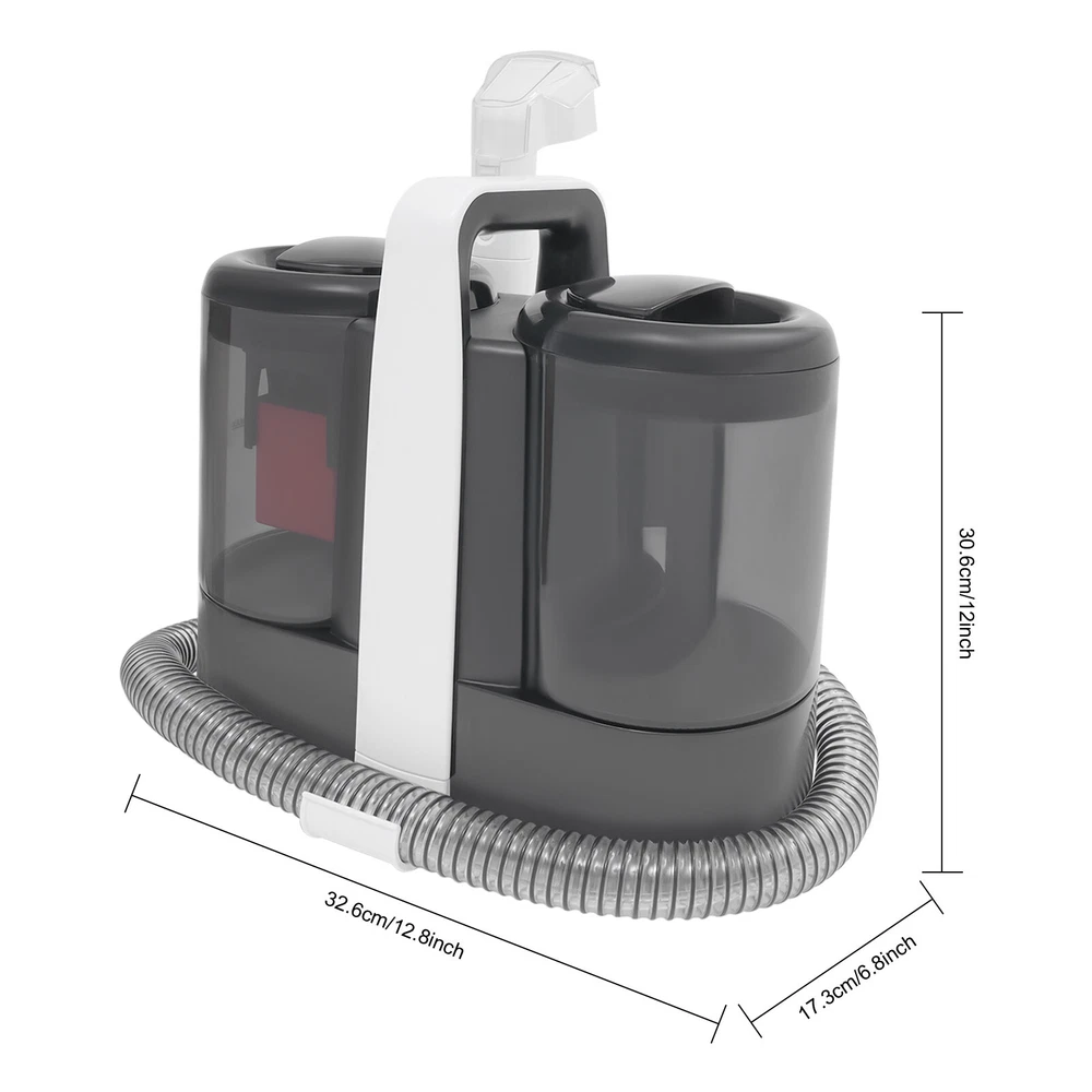 Carpet Cleaner Machine,Carpet Cleaner w/2 Brushes Powerful Stain Suction Machine Description Welcome to the new era of cleanliness! Our carpet cleaning machine has a wide operating range, strong suction capacity, and enlarged water tanks, allowing you to flexibly and efficiently handle large-scale cleaning and corner cleaning work. Let this product bring a refreshing and clean experience! Come and upgrade your cleaning right now! Key Features Good Material: Premium ABS, after injection molding, is corrosion-resistant, rust-resistant, not easy to crack or age, and has a long service life. Efficient Cleaning: The air power of the product is greater than or equal to 40W, which can generate an airflow of 2.64 gal/S and provide super strong suction power of ≥11kPa, quickly suck wastewater, and improve cleaning efficiency. 3-in-1 Design: This product integrates water spray, brush, and suction, which can penetrate deep into fiber gaps, remove stains, dust, and residue, and make your sofa, curtains, carpets, car seats, and more take on a new look. Visible Design : The semi-clear and separate water tank & waste water tank with the max water level lines can display changes in water volume, allowing you to timely replenish clean water, and pour out sewage, ensuring continuous and smooth use. Flexible Operation : The 16.4-foot power cord, 3.94-foot hose, and 0.82-foot suction head provide you with a wide operating space and a more flexible operating experience. Easy to Carry: The compact size (12.8*6.8*12in) and portable handle allow you to easily move this product to where you need it. Easy Clean-Up: The surface of the product is smooth and the structure is simple. You can easily use a soft cloth to wipe it clean. Ideal Gift: Thanks to its function and simple operation, you can give it as a gift to your friends on their birthday, Christmas, or any other holiday. Details 2 Brush Heads: Large and small brush heads can take care of the cleaning of large areas and details, making the product flexible and efficient to use. Detachable Hose: This design facilitates its replacement, storage, and cleaning. Tool Holders: They can secure the power cord, brush heads, and hose to the product for easier storage. Application This product can be widely used in homes, housekeeping services, pet shops, car wash shops, hotels, homestays, dormitories, apartments, hospitals, and other places. It can clean carpets, sofas, blankets, stairs, mats, pet stains, and more. How to Use 1. Spray water on the stained area and wait for some time. 2. Use the brush head to scrub stains. 3. Use the suction head at the top of the brush head to extract water. Specification Material: ABS Process: Injection Molding Color: White+Black Style: Modern Assembly Required: Yes Mount Type: Floor Mounted Motor Type: Pure Copper Motor Power Supply: Corded Electric Plug Type: US Standard Rated Voltage: 120V~60Hz Total Power: 450W Max. Suction Pressure: ≥11kPa Max. Air Power: ≥40W Max. Airflow: ≥10L/2.64 gal/s Max. Efficiency: ≥12% Max. Noise: ≤ 80db (A) Wastewater Tank Capacity: 700ml/0.18 gal Water Tank Capacity: 1500ml/0.39 gal Power Cord Length: 5m/16.4ft Hose Length: 1.2m/3.94ft Suction Head Length: 0.25m/0.82ft Product Size: 32.6*17.3*30.6cm/12.8*6.8*12in Package Size: 39*34*19.5cm/15.35*13.39*7.68in Gross Weight: 4.8kg/10.58lbs Net Weight: 4kg/8.82lbs Package Included 1 * Carpet Cleaning Machine 2 * Brushes 1 * Hose 3* Tool Holders 1 * English Manual Notes Please read the operating manual completely before use. And pay particular attention to the safety instructions included. Please note that the water volume of the wastewater tank can't exceed the MAX line, otherwise, it may cause the suction of the machine to stop. We recommend using nonfoaming or low-foaming cleaning solutions (not included). Please allow the slight color difference caused by the shooting light and 1-3cm error due to manual measurement, and make sure you do not mind before ordering. Payment Delivery details Terms of sales About us Contact us Payment We accept ebay payment 。 Fees such as import duties, taxes are not included in the item price or shipping costs. These charges are the buyer's responsibility. Delivery details Shipping: 2-9 working days to: USA Terms of sales We maintain high standards of excellence and strive for hundred percent customer satisfaction. Feedback is very important to us. We hope that you contact us immediately before you give neutral or negative feedback, so that we can address your concerns. It is impossible to address issues if we do not know about them! About us Your satis faction is our ultimate goal. We work hard to earn your trust and future business. Our certified technicians have tested each item before shipping. The unit comes with 1 year limited warranty on all manufacturing defects. a) If you receive a defective item, you may return it or ask for a discount. Please contact us within 14 days after you receive the package. b) What you returned must be intact and in its original packaging as re? u. Customer is responsible for shipping costs of the returned item. c) We will cover the cost of shipping back t with the shipping rate indicated in the registration page. We will send you a new unit or refund the full payment you paid. Thank you. Contact us Business Hour Business Hour: Monday To Friday: 8:30 AM to 5:00 PM (Beijing China time) Due to time zones, our reply to your questions may not be immediately. But within above working time, we will reply your email within 24 hours. If it's non-workdays, please kindly be patient and wait till Monday. Please contact us with ebay message. Please feel free to contact us if you have any questions. Monday To Friday: 8:30 AM to 5:00 PM (Beijing China time) Due to time zones, our reply to your questions may not be immediately. But within above working time, we will reply your email within 24 hours. If it's non-workdays, please kindly be patient and wait till Monday. Please contact us with