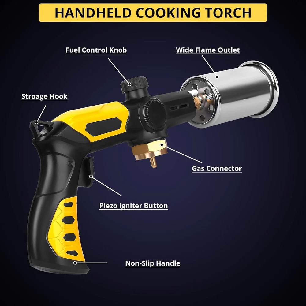 Store New Arrivals Add to Favorite View Feedback Contact Powerful Cooking Torch, Sous Vide Propane Torch, Kitchen Culinary Grilling Torch Lighter for Searing Meat, Charcoal Lighter, BBQ and Campfire Starter (Tank Not Included) Description Item model number GF-8010 Part Number GF-8010 Style Classic Maximum Temperature 2500 Degrees Fahrenheit Power Source Propane Color Black-yellow Country of Origin China Material Alloy Aluminum Handle/Lever Placement Right Batteries Required? No Item Weight 1.28 Pounds Shape Gun-Shape Batteries Included? No Usage Ideal for searing meat after sous vide cooking, cooking crème brûlée, roasting bell peppers or melting cheese, starting the grill or campfire, lighting up charcoal or candles, starting fires in the fire pit, BBQ camping and so on. Warranty Description 12-Month Warranty Size Large Product Dimensions 12.99"L x 2.36"W x 5.24"H Included Components Powerful Propane Cooking Torch x 1, User Manual x 1 FOR THE SAFETY REASON, PROPANE TANKS ARE NOT INCLUDED! Powerful and Safe Propane Cooking Torch: TBTEEK culinary torch lighter is designed with a really powerful ignition system which could shoot out plenty of heat and a large flame, so that it could quickly light up a large split wood or speed up searing after sous vide cooking the steaks, saving lots of your time. The long handle design and the finger guard could protect you away from the flame and avoid accidental burn. Adjustable Flame and Continuous Flame Mode: The flame size of this culinary torch could be adjusted to different intensity by the gas valve on the top of the torch lighter to meet your various burning needs. The temperature could reach up to 2500°F. Once turn on the ignition and adjust the flame to a specific size, you will get a continuous flame without always having to press the ignition button. (Note: Please light the torch with the minimum amount of gas, then adjust it according to your task) Refillable Kitchen Torch: This handheld searing torch is refillable and could work with the propane, MAPP, MAP-Pro,Coleman Propane CGA600 Canister. Also it fits most of the propane tanks. (For the safe shipping, the propane tanks are not included) Versatile Applications and Perfect Gifts: This rocket fire torch can not only be used as a food torch for searing meat after sous vide cooking, cooking crème brûlée, roasting bell peppers or melting cheese, it can also be used outside of the kitchen to start the grill or campfire, light up charcoal or candles, start fires in the fire pit, BBQ camping and so on. Besides, it's also a perfect gift for your lovers. Premium Quality & Reliable After-sale Support: TBTEEK grilling culinary kitchen torch is made of the industrial-grade aluminum alloy materials, which ensures a super high quality and long lifetime of the torch. If you have any doubts with our products, please do not hesitate to contact us at any time! Product Description Perfect Gifts For Your Loved Ones TBTEEK rocket fire torch can not only be used as a food torch for searing meat after sous vide cooking, cooking crème brûlée, roasting bell peppers or melting cheese, it can also be used outside of the kitchen to start the grill or campfire, light up charcoal or candles, start fires in the fire pit, BBQ camping and so on. Besides, it's also a perfect gift for your lovers or friends. If you don't know which propane torch to choose, just take this one! You won't regret! Does the propane cooking torch come with the propane tanks? No. For the safety reason, the propane torch head is shipped without tanks. You may get one seperately. Do I need to always press the ignition button while working? No. Once you turn on the ignition button and adjust the flame size, you will get a continuous flame without always pressing the ignition button. What type of the replacement fuel does this handheld propane torch support? TBTEEK powerful searing torch could work with the propane, MAPP, MAP-Pro, Coleman Propane CGA600 Canister and will fits most of the pranpane tanks. What's the difference between this TBTEEK propane campfire torch with other torch lighters? TBTEEK professional propane grill torch is equipped with special features of larger flames and higher temperature. The flame length is up to 7-8inch and the temperature is up to 2500°F, then you could save much more time while cooking. TL-8010 TBTEEK Professional Torch Safety Lock/Stopper Adjustable Flame Continuous Flame Gas Gauge 7-8 Inch Flame Size 7-8 Inch Propane&Butane Fuel Type Propane&Butane Safety Lock/Stopper Adjustable Flame Continuous Flame Gas Gauge 7-8 Inch Flame Size 3-4 Inch Propane&Butane Fuel Type Butane Safety Lock/Stopper Adjustable Flame Continuous Flame Gas Gauge 7-8 Inch Flame Size 3-4 Inch Propane&Butane Fuel Type Butane Safety Lock/Stopper Adjustable Flame Continuous Flame Gas Gauge 7-8 Inch Flame Size 3-4 Inch Propane&Butane Fuel Type Butane TL-8011 T901-BS T907 T400 ABOUT US We offer the best prices around on high quality products. Our E-store includes media such as books, movies, music and games while offering electronics, toys, sporting apparel, clothing, tools, general home, garden items and more. SHIPPING We are always working hard to ensure your package arrives as soon as possible. Please understand that some factors like weather, high postal traffic, and the performance of shipping companies are outside of our control. We offer free shipping to the lower 48 states and ship within 2 business days of payment, usually sooner. We do not accept P.O. Boxes. Please provide a physical address. For shipping outside of the continental USA, we only use eBay's Global Shipping Program.The item is shipped to KY and then sent to the rest of the world. International customers are responsible for all duties and taxes. Continue to check out in order to calculate costs for shipping the item to your country. Messages regarding eBay's Global Shipping Program MUST be directed at eBay EXCLUSIVELY. RETURNS We offer a 30-Day Return Policy on