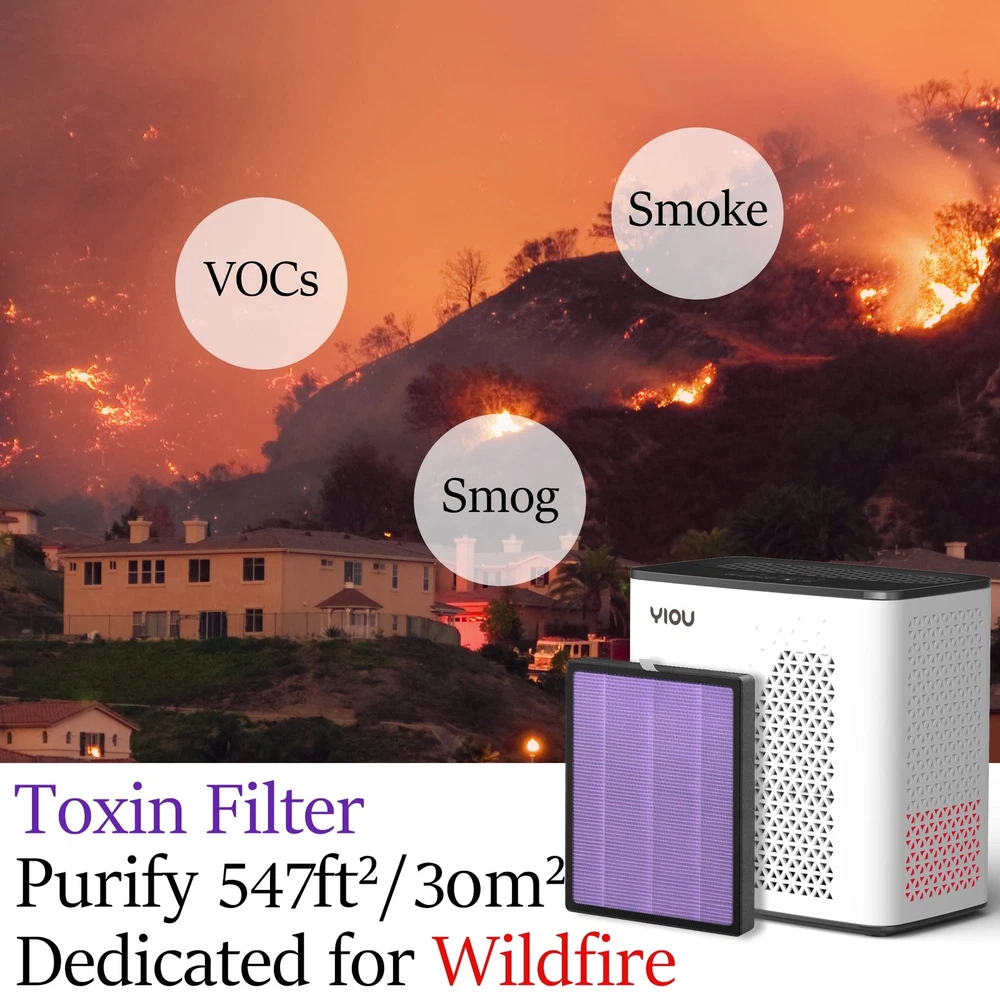 Adopted enhanced air duct system, air purifiers can purifiy up to 547 ft² room twice per hour and effectively block air-born pollution. 3-Stage True HEPA Filter: Consisted of pre-layer, H13 true HEPA layer and activated carbon layer, air filter can capture large airborne particles, and decompose unpleasant odors in turn to relief respiratory discomfort.[Please search B0972641SV for replacement filter.] Visible Real-time Air Quality Indicator: Built in a high precision laser sensor, air purifiers for home will glow red/yellow/green to reveal poor/good/excellent air quality by detecting airborne particles as small as 0.3um. Sleep within a Sound of Silence: For a halcyon and healthier sleep at night, air purifiers for bedroom can work at 20dB in sleep mode with the indicators half on or off and no buzz or beep. Using timer setting from 1-7 hours and child lock at the same time for better user experience. Certificated Air Cleaner: Complying with Part 15 of the FCC rules, air purifier has a CADR of 140 CFM for smoke, 139 CFM for dust and 144 CFM for pollen, effective for wildfire smoke and allergies larger than 0.3 um