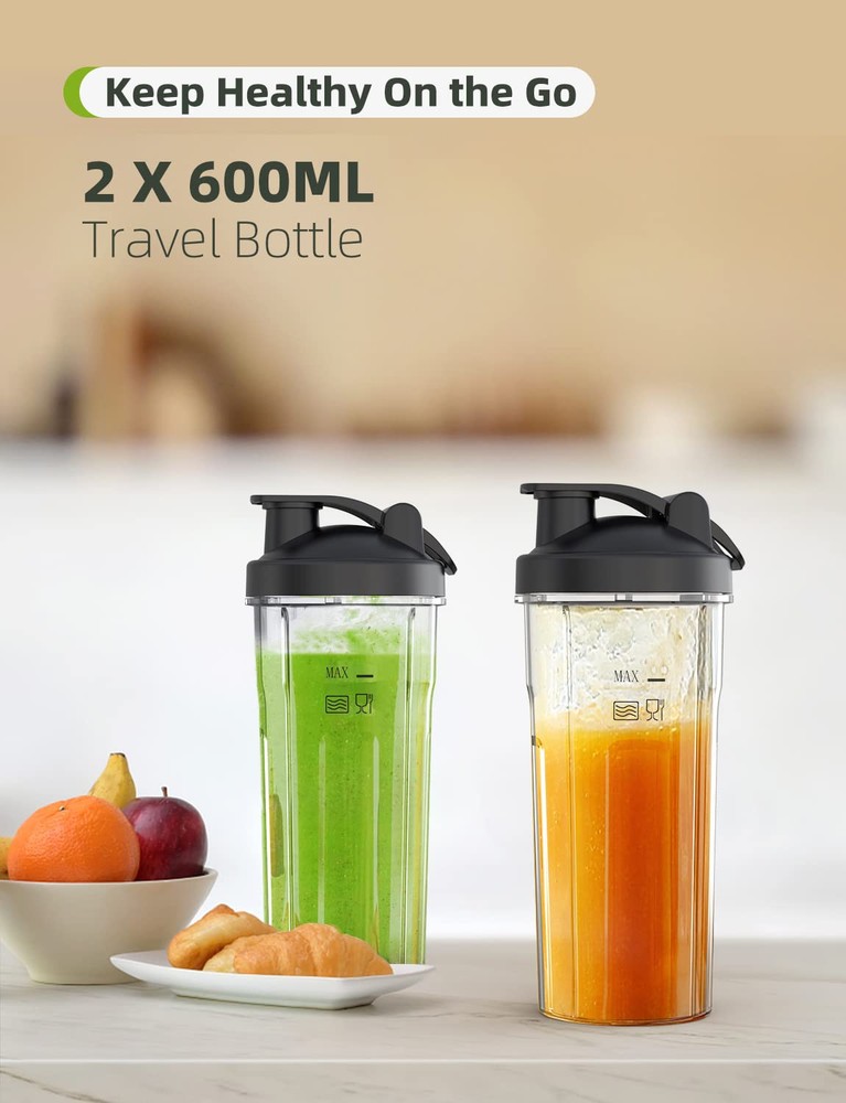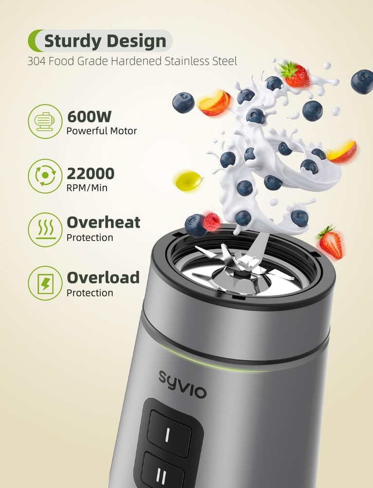 【Powerful Smoothie Blender】600W smoothie blender for shakes and smoothies with powerful motor pulse technology, quickly crushing fruits and vegetables, allowing your personal blender to expand your creativity in the kitchen. 【Easy to Use and Clean】Blender for smoothies is easy to use with one button operation. To clean, put clear water into the blender and turn it on. In addition, the smoothie maker can be easily cleaned in a dishwasher, except for the motor part. 【304 Stainless Blades and 2 Cups】Blender blade is made of 304 stainless steel, featuring a 4-blade cross and a flat 2-blade design that can easily blend and extract nutrients. It comes with 2 * 20 oz BPA-Free blender cups, which can easily meet the needs of a family for making juices and smoothies. 【Healthy and Safe】Food blender is equipped with a safety lock that only works when the blender cup is properly locked into the base. Sip freely with the 20oz BPA-free blender cup. You can mash vegetables and fruits into delicious beverages with peace of mind. 【Reliable Quality Assurance】smoothie blender has 24-hour 100% satisfaction customer service. If you experience any issues with our items or services, please do not hesitate to contact us. Additionally, we provide a 12-month warranty and lifetime technical support to guarantee our reliable quality.