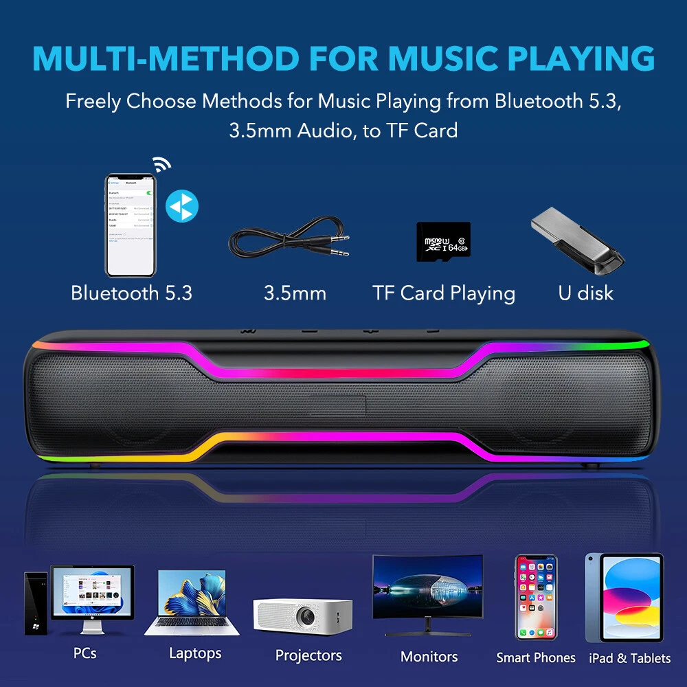 20W Bluetooth Speaker PC RGB Gaming Soundbar 3.5mm Aux-in Computer Speakers for Desktop Monitor Computer TWS Sound Bar Features: 1.TWS Pairing Function: You can purchase two speakers at the same time to truly enjoy the surround sound of a movie theater by pairing the TWS function, it's an auditory experience that's truly unparalleled. 2.Built-in Battery: This soundbar comes with a built-in 3000mAh high-capacity battery, providing the freedom to enjoy your music without being tethered to a power source. Whether you're at home, in the office, or on the go, the internal battery ensures uninterrupted music playback. Chairmanstore Powerful TV Sound Bar Bluetooth Wireless Speaker Home Theater Subwoofer Soundbar 20W Bluetooth Speaker PC RGB Gaming Soundbar 3.5mm Aux-in Computer Speakers for Desktop Monitor Computer TWS Sound Bar Features: 1.TWS Pairing Function: You can purchase two speakers at the same time to truly enjoy the surround sound of a movie theater by pairing the TWS function, it's an auditory experience that's truly unparalleled. 2.Built-in Battery: This soundbar comes with a built-in 3000mAh high-capacity battery, providing the freedom to enjoy your music without being tethered to a power source. Whether you're at home, in the office, or on the go, the internal battery ensures uninterrupted music playback. 3.Versatile Connectivity: The soundbar offers a wide range of connectivity options. You can play music through the AUX input, connect wirelessly via Bluetooth for convenience, and even access your favorite tunes from TF cards and USB drives. This versatility ensures you can enjoy your music from various sources. 4.Vibrant RGB Lighting: The product boasts 6 different RGB lighting options on its front panel. These slow-changing lights not only enhance the visual aesthetics of your setup but also set the mood for your listening experience. The dynamic lighting adds a touch of ambiance to your desktop or living space. 5.FM Radio Function: This soundbar also features an FM radio function, allowing you to tune in to your favorite radio stations at any time. It expands the soundbar's functionality, providing you with more entertainment options. 6.Hand Free Call: The soundbar is equipped with call handling capabilities, allowing you to answer and end phone calls directly through the speaker. It serves as a convenient communication tool in addition to being a music playback device. Specifications: Type: Bluetooth Speaker Soundbar Function : Bluetooth/handsfree/Aux-in/TF/USB/RGB/TWS/FM Bluetooth version : V5.3 Rated Power : 10W*2 Playing time : 3-4 hours(100% volume),6-9 hours(50%-70% volume) Transmission Distance : 10M Battery capacity : 3000mAh Charging time : about 4 hours Charging voltage: 0.5~1.0A DC5V/USB POWER Frequency response: 100Hz-20KHz Material : ABS+Iron net Product size :400(L) * 70(W) * 80(H)mm Package Included: 1 x Speaker 1 x AUX Cable 1 x Type-C Cable 1 x User Manual Item Specifics Brand Unbranded Connectivity Bluetooth version Model Computer Speaker Type Bluetooth Speaker Soundbar Color Black Features Stereo Sound& Noiseless MPN Does Not Apply Compatible Brand Universal Compatible Model Universal Material Plastic Audio Inputs USB Design Stylish Slim Design Dimension 400(L) * 70(W) * 80(H)mm Charging voltage 0.5~1.0A DC5V/USB POWER Fit Design Stereo Sound & Noiseless Fit For for computers, desktops, tablets, PCs, Macs, Pad Playing time 3-4 hours(100% volume),6-9 hours(50%-70% volume) Transmission Distance 10M Battery capacity 3000mAh Charging time :about 4 hours Frequency response :100Hz-20KHz Supported System Windows, Unix, Linux, NetWare, and Mac, etc. USB cable Length 51inch Warranty One Year Warranty Material ABS(Iron net) Function Bluetooth/handsfree/Aux-in/TF/USB/RGB/TWS/FM Payment 1. This is the payment method we can accept: Paypal 2. You can checkout and pay immediately after the auction ends or you complete the purchases. If you need an eBay invoice sent to you by Email, please contact us before making payments. Shipping 1.We will ship to your eBay address. Please make sure your eBay address is correct before you pay. 2.We will ship out your order within 2 business days after receiving your verified payment (Excluding Weekends and Public Holidays)! Returns 1.If you are not satisfied with our products. Please kindly contact us before you open the return request . We provides 30 days Money Back or Exchangement Warranty. 2.Please Kindly contact us for the RMA No.and address before returning the item back. Contact Us 1. Please contact us if you are not satisfied with the item after receive it. Just contact us using the " Ask the seller a question" link on eBay. 2.All replies will be sent to your email, if you don't get response within 1-2 business days, pls check your My messages' in case your email provider has an overly-aggressive spam filterblocking eBay's emails. Please email us AGAIN.Thanks Chairmanstore DESCRIPTION PAYMENT SHIPPING RETURN POLICY CONTACT US Shop Category Store Home Home&Garden (G&V) Big discount Other Hot Item Wireless Car Bluetooth FM Transmitter AUX Radio Adapter Handsfree USB Charger US USD 12.05 Mpow USB Computer PC Headset Headphones Call Centrer Noise Cancelling Microphone USD 16.21 Mpow HC6 USB Headset/3.5mm Wired Computer Headset w/ Microphone Noise Cancelling USD 29.99 Bluetooth Headset 5.0 TWS Wireless Earphones Earbuds Stereo Ear Hook Headphones USD 20.99 Mpow 071 USB Headset/3.5mm Computer PC Headset with Microphone Noise Cancelling USD 29.99 New List Item Help & Info Payment Policy Shipping Policy Return Policy FAQ About Us Powerful TV Sound Bar Bluetooth Wireless Speaker Home Theater Subwoofer Soundbar 20W Bluetooth Speaker PC RGB Gaming Soundbar 3.5mm Aux-in Computer Speakers for Desktop Monitor Computer TWS Sound Bar Features: 1.TWS Pairing Function: You can purchase two speakers at the same time to truly enjoy the surround sound of a movie theater by pairing the TWS function, it's an auditory experience that's truly unparallel