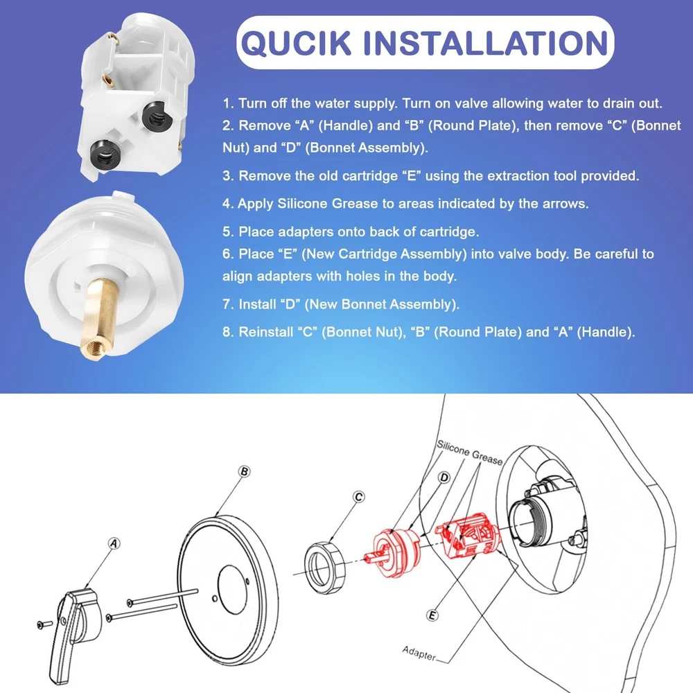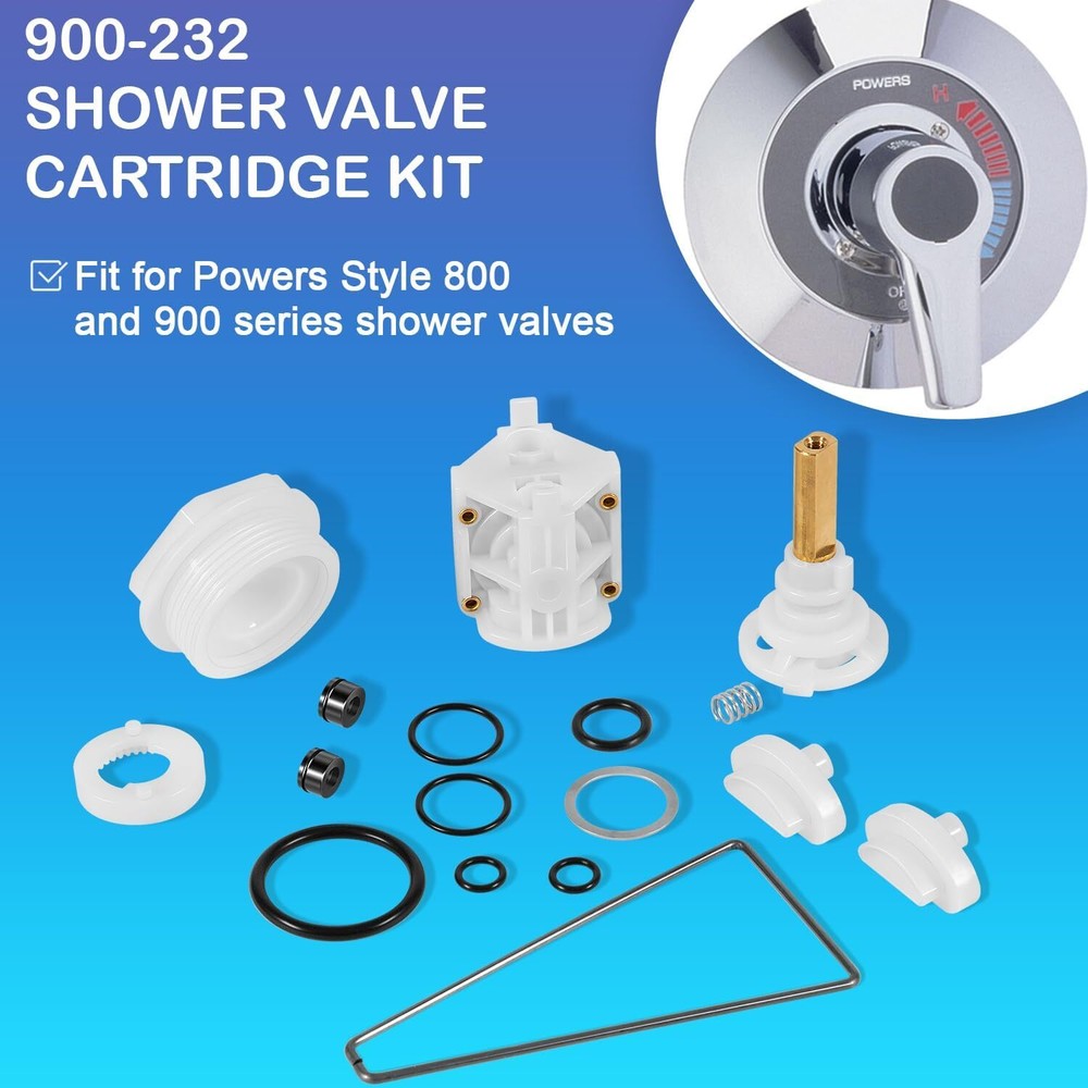 For Powers Style Shower Valve Cartridge Replacement Kit 900-232 Features: For Powers Valve Repair Kit: 900-232 valve cartridge is compatible with Powers Style shower, applied in shower fixtures to provide better control over water flow and temperature. Ensure a more enjoyable and comfortable shower experience. Comfortable & Safe Bathing Experience: If you are encountering shower not reaching the desired temperature or faucet trickling, it is recommended to replace the cartridge kit promptly as there maybe something wrong inside the shower valve cartridge or behind the shower handle. Quick & Easy Replacement: Package includes all basic parts for hassle-free installation. Comes with installation manual for reference. Jaga-tools In Search of Excellence! For Powers Style Shower Valve Cartridge Replacement Kit 900-232 For Powers Style Shower Valve Cartridge Replacement Kit 900-232 Features: For Powers Valve Repair Kit: 900-232 valve cartridge is compatible with Powers Style shower, applied in shower fixtures to provide better control over water flow and temperature. Ensure a more enjoyable and comfortable shower experience. Comfortable & Safe Bathing Experience: If you are encountering shower not reaching the desired temperature or faucet trickling, it is recommended to replace the cartridge kit promptly as there maybe something wrong inside the shower valve cartridge or behind the shower handle. Quick & Easy Replacement: Package includes all basic parts for hassle-free installation. Comes with installation manual for reference. High Quality Faucet Replacement Parts: Made of premium-grade material with higher strength. Better corrosion resistance, impact resistance and anti-deformation for long-lasting reliable use. Package includes qualified gaskets and seals to prevent leakage. Satisfaction Guarantee: All our products support 60-Day money-back guarantee, 12-Month warranty for quality-related issues. Simply return it for your warranty. If your item is defective, incorrect, arrived damaged or any other problems, please contact us (include pictures if possible) and we will reply in 24 hours. Package Included: 1 * 900-232 Shower Valve Cartridge Kit. Item Specifics Brand JT-Motor Type Shower Valve Cartridge Kit Fitment for Powers Style Shower OE/OEM Part Number 900-232 Material Brass, Plastic, Rubber Manufacturer Warranty 1 Year Feaatures Durable, Easy Installation Color White Item Weight 4.6 ounces Product Dimensions 4.79 x 2.45 x 2.22 inches Custom Bundle No Bundle Description No Single item or set Set Payment Returns Jaga-tools In Search of Excellence! DESCRIPTION PAYMENT SHIPPING RETURN POLICY For Powers Style Shower Valve Cartridge Replacement Kit 900-232 For Powers Style Shower Valve Cartridge Replacement Kit 900-232 Features: For Powers Valve Repair Kit: 900-232 valve cartridge is compatible with Powers Style shower, applied in shower fixtures to provide better control over water flow and temperature. Ensure a more enjoyable and comfortable shower experience. Comfortable & Safe Bathing Experience: If you are encountering shower not reaching the desired temperature or faucet trickling, it is recommended to replace the cartridge kit promptly as there maybe something wrong inside the shower valve cartridge or behind the shower handle. Quick & Easy Replacement: Package includes all basic parts for hassle-free installation. Comes with installation manual for reference. High Quality Faucet Replacement Parts: Made of premium-grade material with higher strength. Better corrosion resistance, impact resistance and anti-deformation for long-lasting reliable use. Package includes qualified gaskets and seals to prevent leakage. Satisfaction Guarantee: All our products support 60-Day money-back guarantee, 12-Month warranty for quality-related issues. Simply return it for your warranty. If your item is defective, incorrect, arrived damaged or any other problems, please contact us (include pictures if possible) and we will reply in 24 hours. Package Included: 1 * 900-232 Shower Valve Cartridge Kit. Payment Returns All rights reserved.