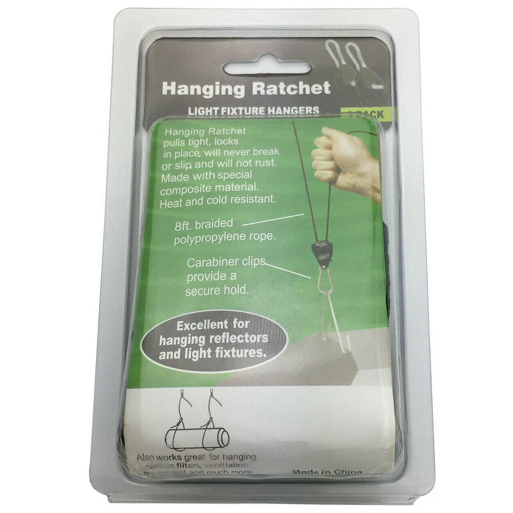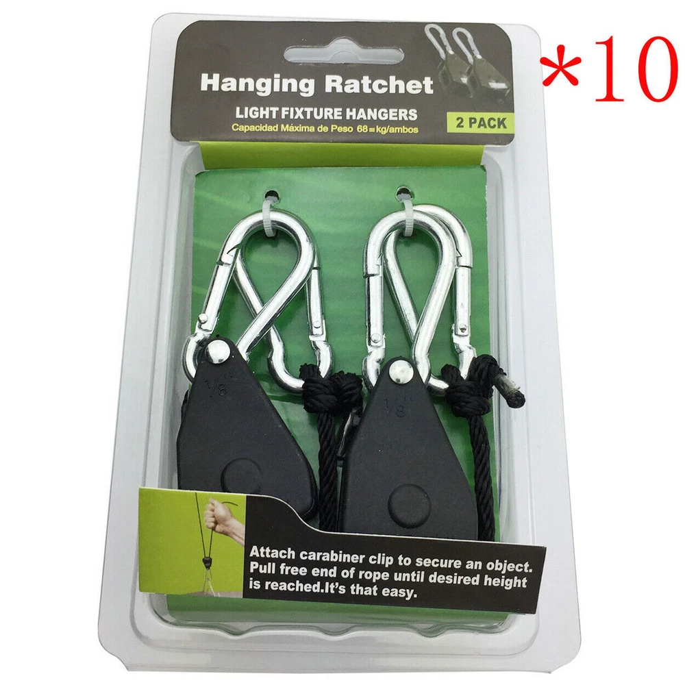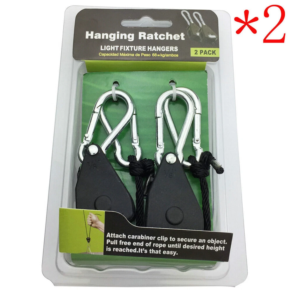 Features: Brand new high quality ratchet hanger Ratchet hanging rope with high strength and long service life Fully adjustable and locking design for your convenience Helps to hang many things, such as hangers, indoor fans, planter lights, etc. This pair of ropes can withstand up to 150 LBS High-quality metals and ropes ensure strong strength and long-lasting durability. specification: Size: 1/8 inch Includes 8 '' Polypropylene Rope Clip and Carabiner Plastic material Application: Used for led light growth and led fish tank light, see pictures Easy to use Quick lock and lock Bearing capacity: 150 LBS 8 inches long per pair Pa ckage includes: ratchet rope(with box, as shown) On Oct 13, 2022 at 18:41:17 PDT, seller added the following information: