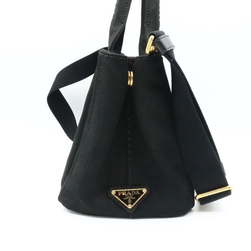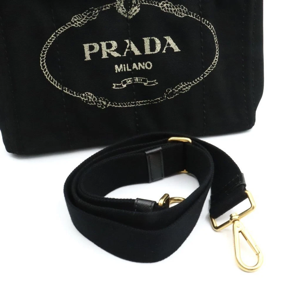 Prada Canapa handbag shoulder bag in black with gold hardware. Size approximately 6.69 inches in height, 11.02 inches in width, and 5.91 inches in depth, with a 48.43-inch adjustable shoulder strap. Features 3 pockets and 1 zipper pocket. Includes a shoulder strap. No stickiness. Zipper is smooth. Button fastens securely. Slight scuffing and wrinkling are present. I promise fast shipping via FedEx or DHL as soon as possible! Import duties, taxes and charges are not included in the item price or shipping charges. These charges are the buyer’s responsibility. These charges are normally collected by the delivering freight (shipping) company or when you pick the item up - do not confuse them for additional shipping charges.