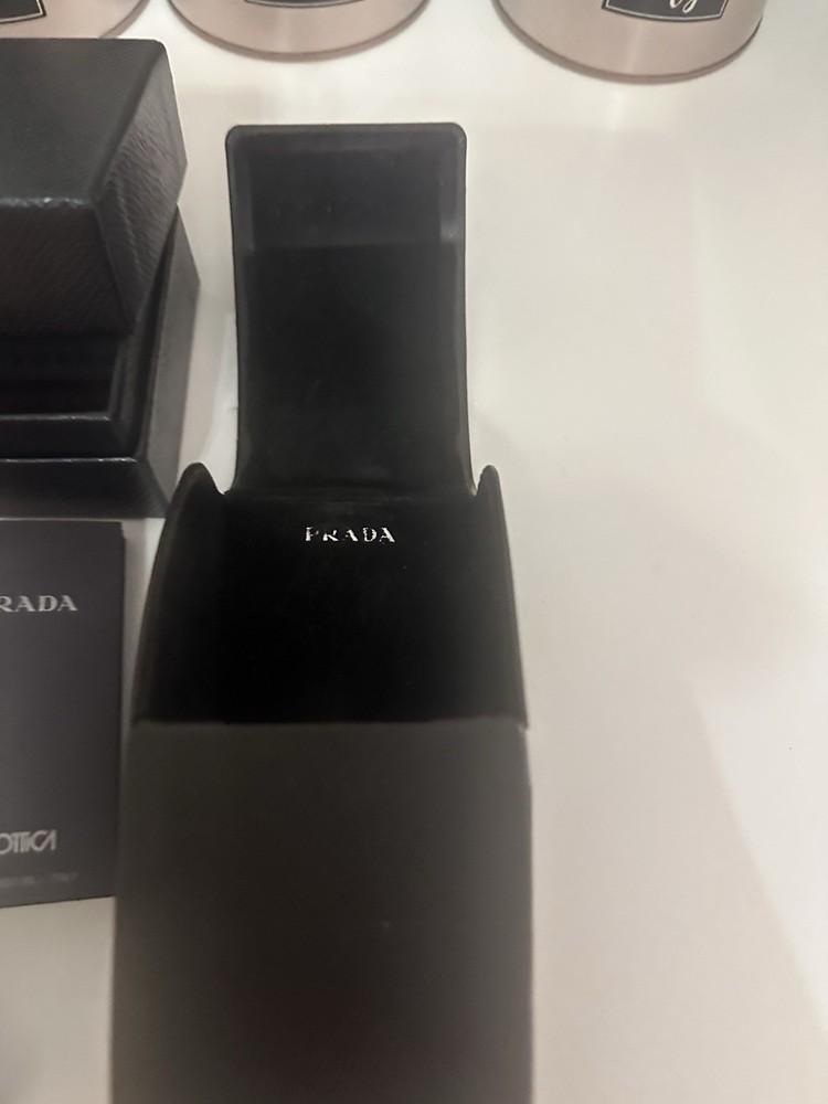 Prada Glasses With Box Papers And Glasses Holder Black.