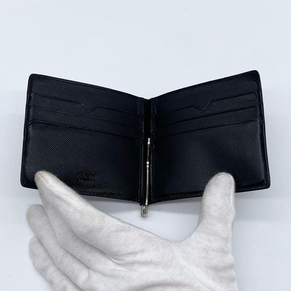 Prada Leather Bifold Wallet with Money Clip Black Embossed Logo Used Key Features - Brand: PRADA - Item: Money Clip & Bi-fold Leather Wallet - Model: Not specified - Material: Genuine leather, Saffiano pattern - Color: Black - Dimensions: Height approximately 3.15 inches (8cm), Width approximately 3.94 inches (10cm), Thickness approximately 0.2 inches (0.5cm) - Features: Elegant design with Prada logo embossed on the surface, silver-tone metal plate, compact and lightweight - Condition: Used, with minor signs of wear but overall very good condition; no significant damage or stains. Slight reflection on photos, but item is clean and well-maintained. - Notes: No accessories are included unless noted in the title or product description. If you have any questions, please ask before purchasing. This item was purchased from a major recycling shop and is sold as-is. Please review the serial number 164 for authenticity. Specifications Brand Prada Country Japan Color Black Material Leather Theme Money Accents Logo Pattern Logo Product Description Item Title Prada Leather Bifold Wallet Money Clip Embossed Logo Black Payment Supports managed payments Please pay within 5 days after auction is finished. About Us We are located in Japan. It's our pleasure to make you happy by proposing our recommend item. If you have any questions or request about items, please feel free to ask us. International Buyers - Please Note: -Import duties, taxes, and charges are not included in the item price or shipping charges. These charges are the buyer's responsibility. -Please check with your country's customs office to determine what these additional costs will be prior to bidding/buying. -These charges are normally collected by the delivering freight (shipping) company or when you pick the item up - do not confuse them for additional shipping charges. -We do not mark merchandise values below value or mark items as - gifts - The US and International government regulations prohibit such behavior. Thank you for your understanding.