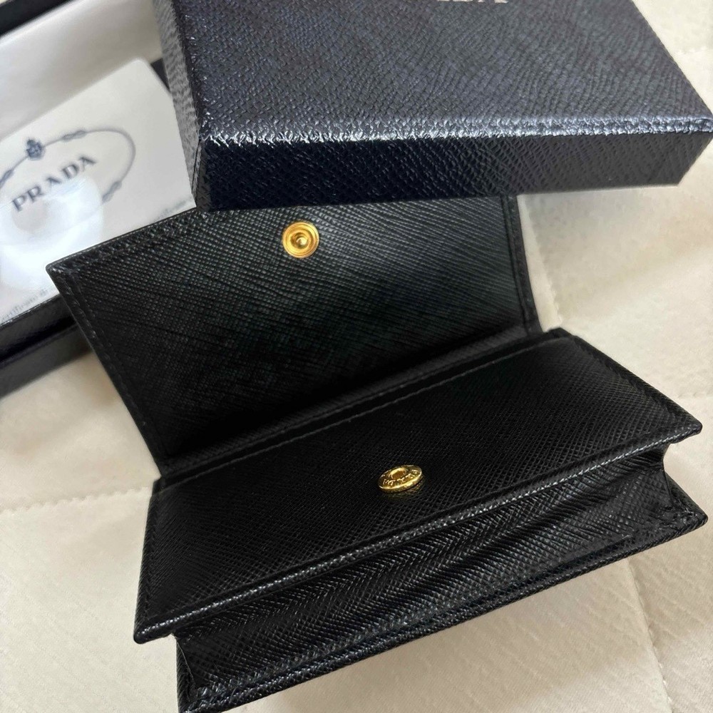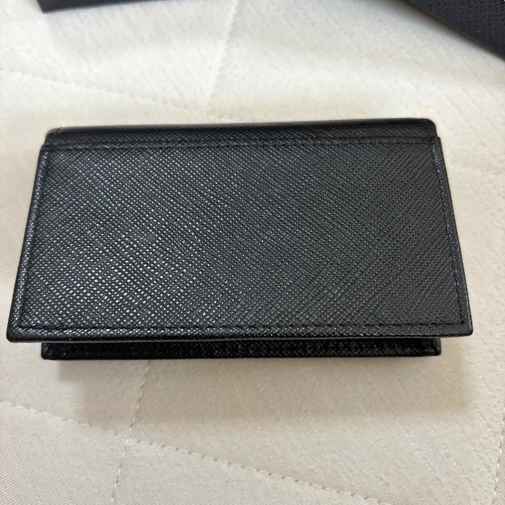 This sleek Prada card case is pure luxury—soft black leather, perfect size for business cards or essentials, and comes with the box and certificate. Feels premium, looks timeless, and fits easily in any pocket or bag. A must-have for anyone who appreciates fine craftsmanship and understated elegance. Worth every penny!