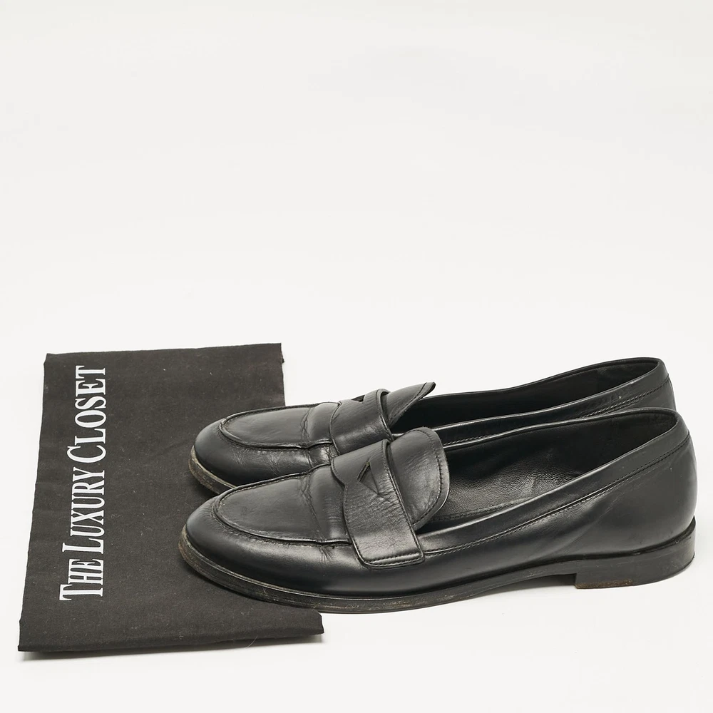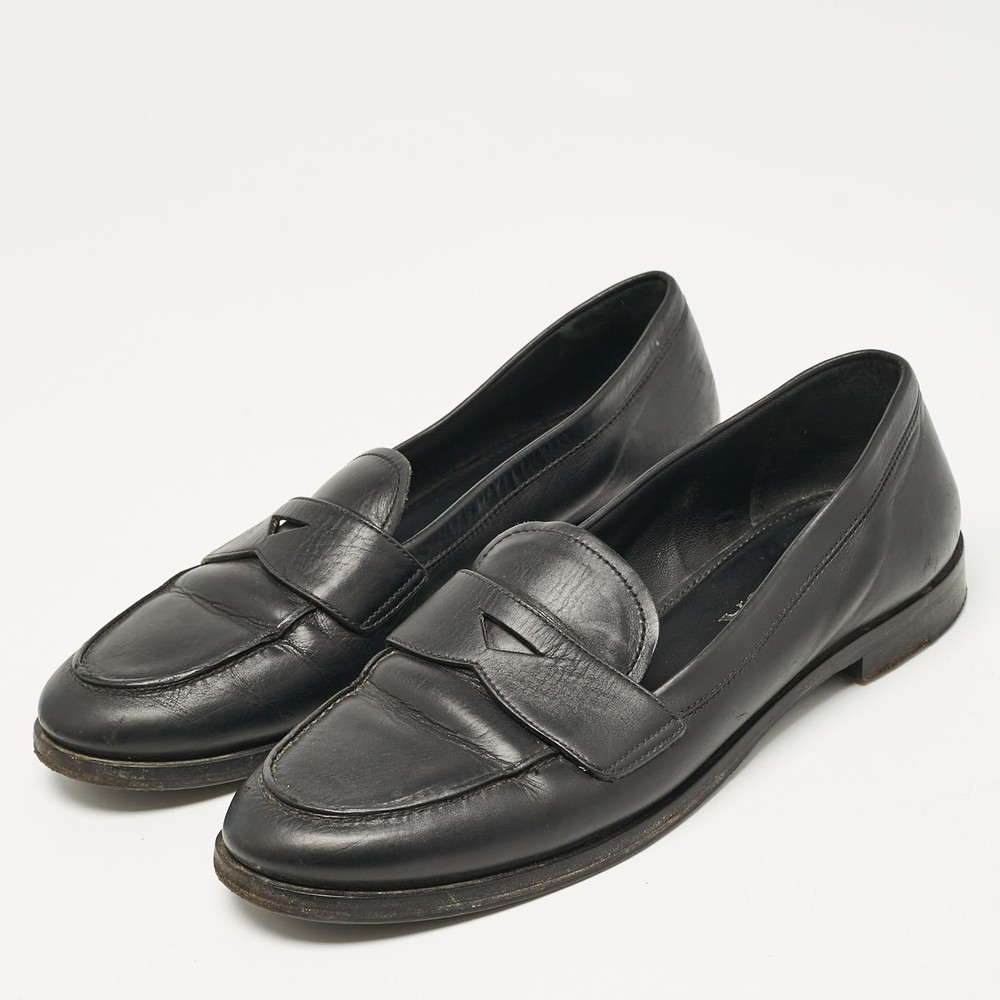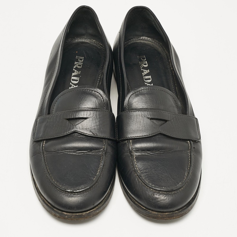 Indulge in timeless elegance with these womens loafers from Prada. Crafted in Italy, their sleek black leather exterior exudes sophistication, while the luxurious leather lining and insole ensure unmatched comfort. Designed for the fashion forward woman, these slip ons feature a durable leather and rubber sole, offering both style and practicality. Perfect for day to night transitions, these exclusive shoes elevate any ensemble with their effortless charm and refined aesthetic. Step into a world of luxury with this exquisite footwear.Certified by The Luxury Closet - This item has gone through a detailed authentication process overseen by our experts. We offer a lifetime guarantee of authenticity on all our items. Import duties, taxes and charges are not included in the item price. These charges are the buyers responsibility. Please check with your country’s customs office to determine what these additional cost will be prior to buying. Our eBay Store About Us Contact Us Add to Favorite Sellers Prada Black Leather Slip On Loafers Size 38.5 $151.8 Indulge in timeless elegance with these womens loafers from Prada. Crafted in Italy, their sleek black leather exterior exudes sophistication, while the luxurious leather lining and insole ensure unmatched comfort. Designed for the fashion forward woman, these slip ons feature a durable leather and rubber sole, offering both style and practicality. Perfect for day to night transitions, these exclusive shoes elevate any ensemble with their effortless charm and refined aesthetic. Step into a world of luxury with this exquisite footwear. Product Details Brand Color Black Dimensions Material Leather Size 38.5 Outsole Width 8.5 cm Outsole Length 27 cm Heel Height Includes The Luxury Closet Packaging Certified by The Luxury Closet This item has gone through a detailed authentication process overseen by our experts. We offer a lifetime guarantee of authenticity on all our items. How We Check The in-house team of experts at The Luxury Closet is highly trained to verify the authenticity and the condition of the luxury products. They ensure that only 100% authentic items are put on sale.The evaluation process is unique with its own mix of assessment criteria and differs according to the category. Each item is evaluated based on the following combination of hallmarks, hardware, stitching, symmetry, material, craftsmanship, stamping, codes, hologram stickers, and packaging. Our authenticators also check if the items have been modified or amended (e.g., aftermarket diamonds, replaced batteries, repaired bags, etc.) International Buyers Import duties, taxes and charges are not included in the item price. These charges are the buyers responsibility. Please check with your country’s customs office to determine what these additional cost will be prior to buying.