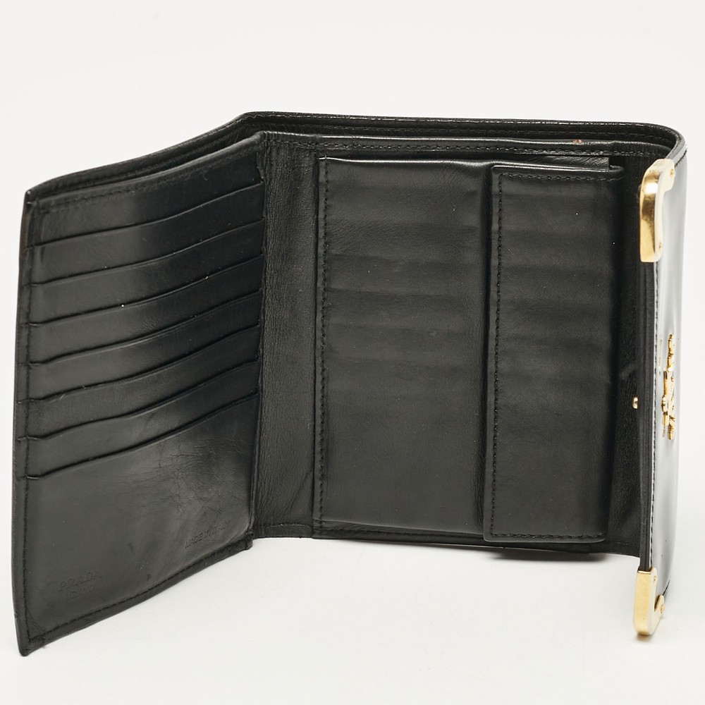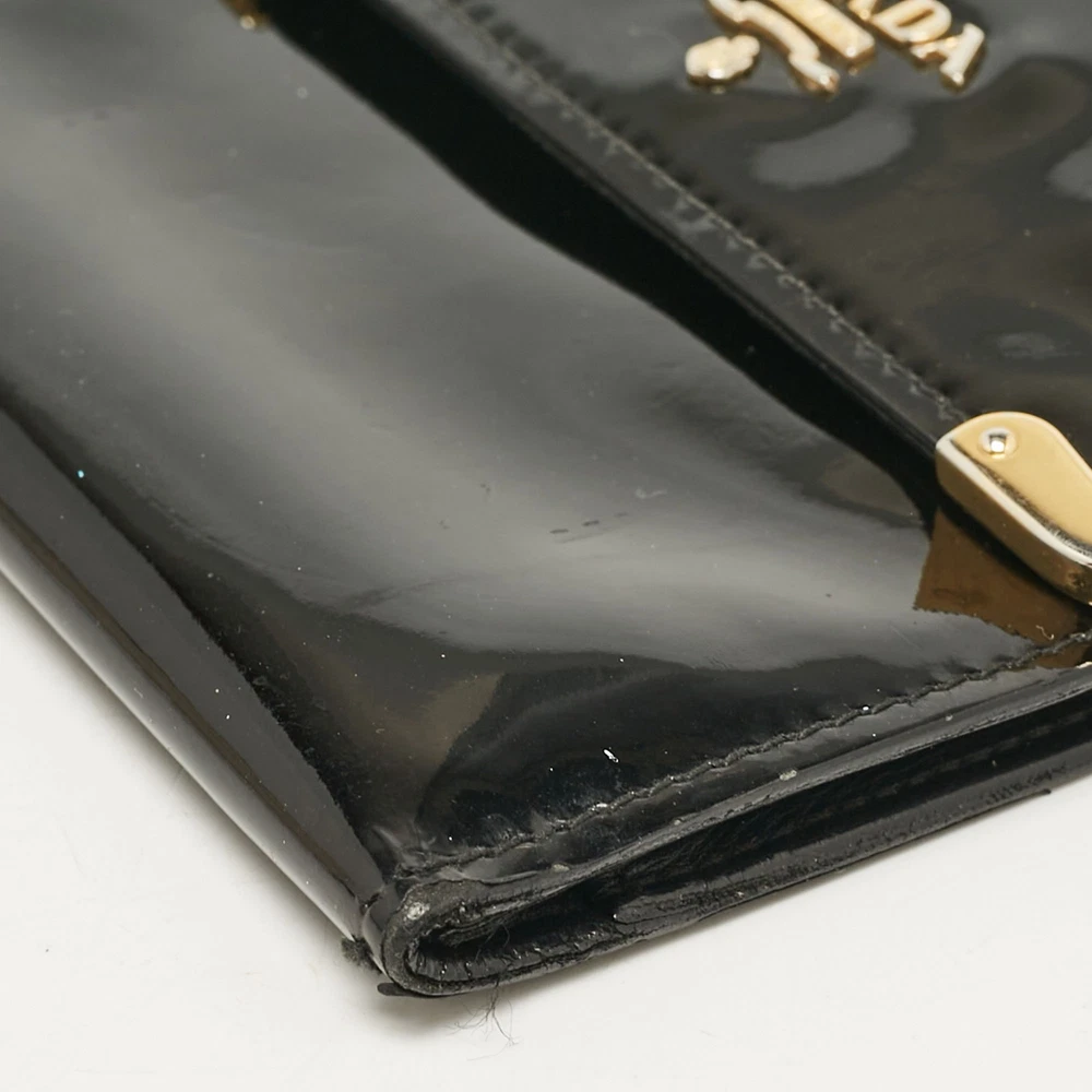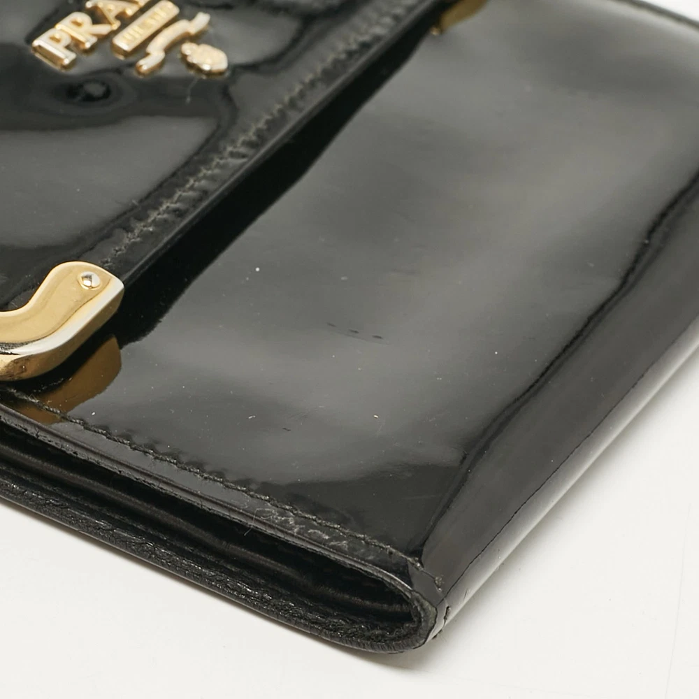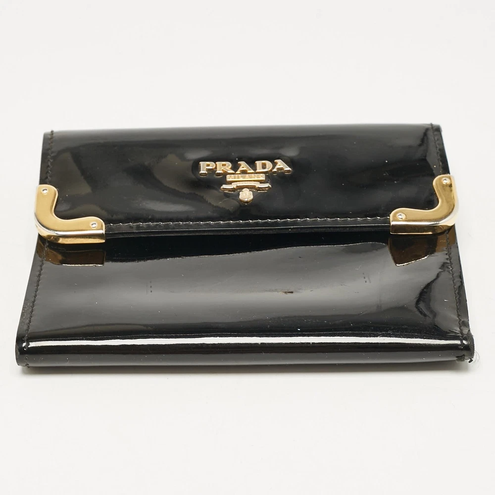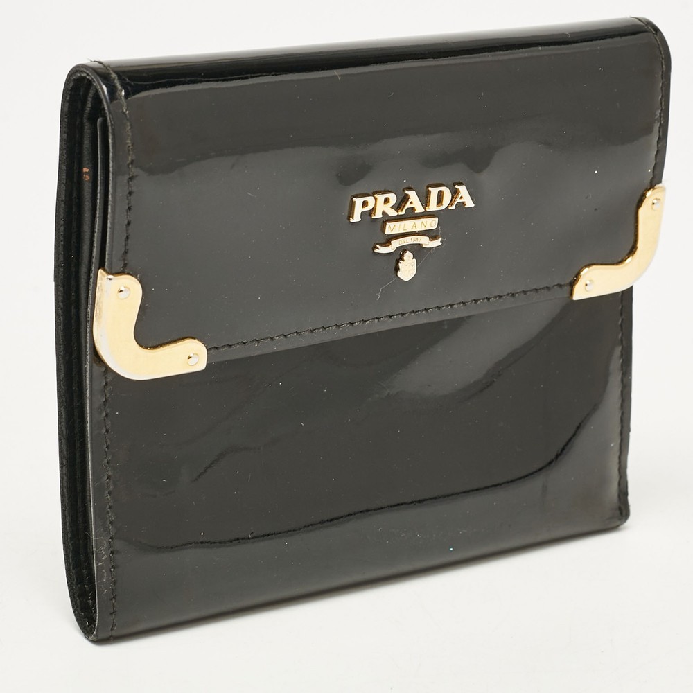This designer wallet is an immaculate balance of sophistication and rational utility. It has been designed using prime quality materials and elevated by a sleek finish. The creation is equipped with ample space for your monetary essentials.Certified by The Luxury Closet - This item has gone through a detailed authentication process overseen by our experts. We offer a lifetime guarantee of authenticity on all our items. Import duties, taxes and charges are not included in the item price. These charges are the buyers responsibility. Please check with your country’s customs office to determine what these additional cost will be prior to buying. Our eBay Store About Us Contact Us Add to Favorite Sellers Prada Black Patent Leather Trifold Wallet $166.1 This designer wallet is an immaculate balance of sophistication and rational utility. It has been designed using prime quality materials and elevated by a sleek finish. The creation is equipped with ample space for your monetary essentials. Product Details Brand Color Black Dimensions Height: 11 cm, Width: 2 cm, Length: 13 cm Material Patent Leather Size Outsole Width Outsole Length Heel Height Includes The Luxury Closet Packaging Certified by The Luxury Closet This item has gone through a detailed authentication process overseen by our experts. We offer a lifetime guarantee of authenticity on all our items. How We Check The in-house team of experts at The Luxury Closet is highly trained to verify the authenticity and the condition of the luxury products. They ensure that only 100% authentic items are put on sale.The evaluation process is unique with its own mix of assessment criteria and differs according to the category. Each item is evaluated based on the following combination of hallmarks, hardware, stitching, symmetry, material, craftsmanship, stamping, codes, hologram stickers, and packaging. Our authenticators also check if the items have been modified or amended (e.g., aftermarket diamonds, replaced batteries, repaired bags, etc.) International Buyers Import duties, taxes and charges are not included in the item price. These charges are the buyers responsibility. Please check with your country’s customs office to determine what these additional cost will be prior to buying.