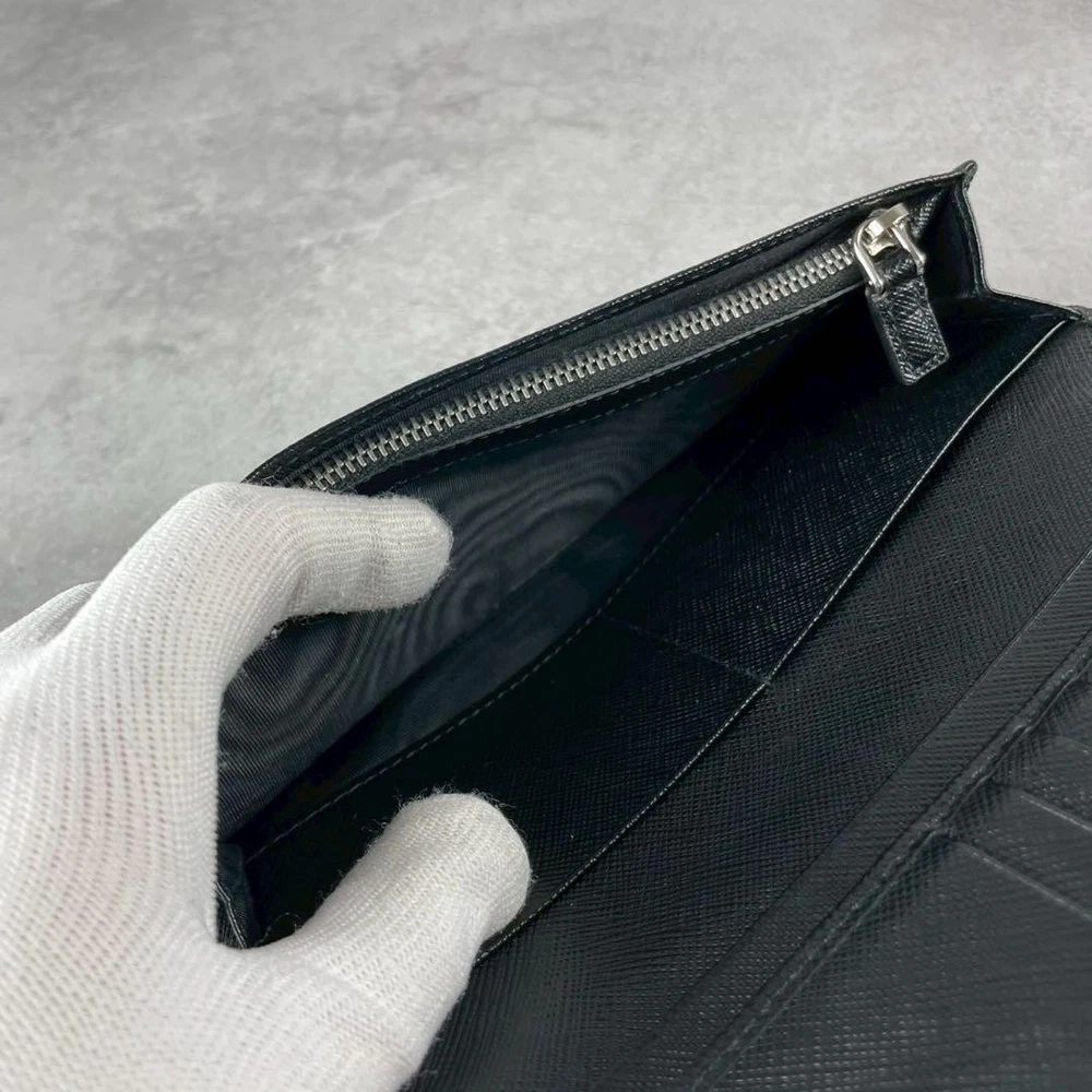 Prada Long Wallet Saffiano Leather Black Triangle Logo Metal Fittings Used Key Features - Brand: Prada - Product: Long Wallet / Bifold Wallet - Model: NERO (Black) Triangular Logo - Material: Saffiano Leather (Genuine Leather) - Features: Compact, cashless design, silver-tone metal hardware, triad logo, suitable for men and women - Dimensions: approximately 9.5 cm (3.7 inches) high, 19 cm (7.5 inches) wide, 2 cm (0.8 inches) depth - Condition: Used but in good condition with minor creases; minimal wear on coin pocket - Note: No accessories are included unless noted in the title or product description. If you have any questions, please ask before purchasing. Specifications Brand Prada Country Japan Color Black Material Leather Theme Metal Accents Logo Pattern Logo Product Description Item Title Popular Prada Long Wallet Triangle Logo Metal Fittings Saffiano Leather Black Payment Supports managed payments Please pay within 5 days after auction is finished. About Us We are located in Japan. It's our pleasure to make you happy by proposing our recommend item. If you have any questions or request about items, please feel free to ask us. International Buyers - Please Note: -Import duties, taxes, and charges are not included in the item price or shipping charges. These charges are the buyer's responsibility. -Please check with your country's customs office to determine what these additional costs will be prior to bidding/buying. -These charges are normally collected by the delivering freight (shipping) company or when you pick the item up - do not confuse them for additional shipping charges. -We do not mark merchandise values below value or mark items as - gifts - The US and International government regulations prohibit such behavior. Thank you for your understanding.