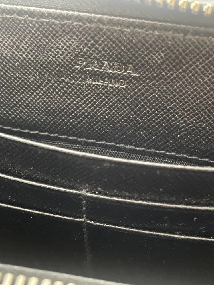 Color: Black Material: Leather gtin13: NA Year Manufactured: NA Personalization Instructions: NA Item Width: NA Brand: PRADA Handmade: NA Pattern: NA Accents: NA Theme: NA Country/Region of Manufacture: NA Style: Flat Item Length: NA UPC: NA Fabric Type: NA Vintage: Vintage California Prop 65 Warning: NA Country: Japan Type: Wallet MPN: NA Features: Coin Pocket Character: NA Personalize: NA Department: NA