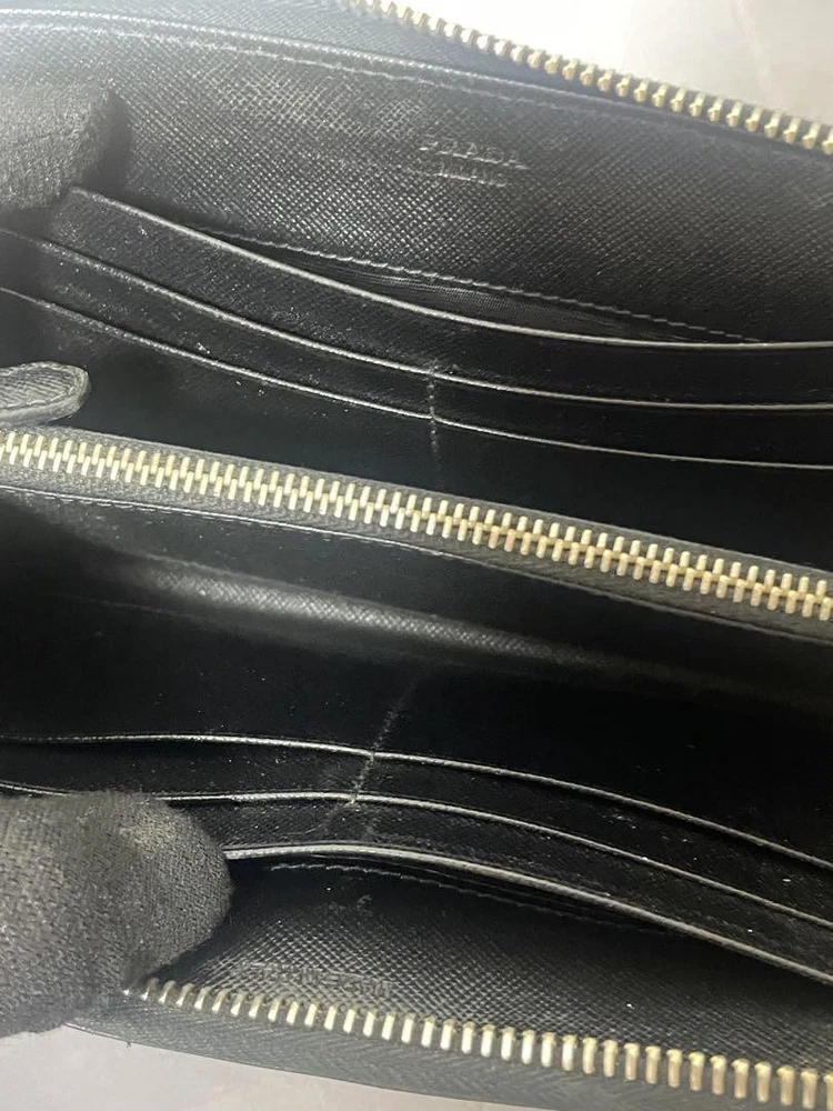 Prada Saffiano Leather Round Zipper Wallet Black Used Key Features - Vintage wallet with multiple compartments - Dimensions: approximately 7.5 inches (19cm) wide, 0.8 inches (2cm) deep, and 4.1 inches (10.5cm) high - Features: 2 bill compartments, 1 coin pocket, 8 card pockets, 2 free pockets - Used item with minor signs of wear and small stains due to storage; please understand before purchasing - No accessories are included unless noted in the title or product description - Measurements are approximate and taken flat; slight variations may occur - Basic cancellations are not accepted; only returns for confirmed defects or damages - Please ask questions before purchasing if needed Specifications Brand Prada Country Japan Color Black Material Leather Product Description Item Title Prada Round Zipper Wallet Saffiano Leather Black Payment Supports managed payments Please pay within 5 days after auction is finished. About Us We are located in Japan. It's our pleasure to make you happy by proposing our recommend item. If you have any questions or request about items, please feel free to ask us. International Buyers - Please Note: -Import duties, taxes, and charges are not included in the item price or shipping charges. These charges are the buyer's responsibility. -Please check with your country's customs office to determine what these additional costs will be prior to bidding/buying. -These charges are normally collected by the delivering freight (shipping) company or when you pick the item up - do not confuse them for additional shipping charges. -We do not mark merchandise values below value or mark items as - gifts - The US and International government regulations prohibit such behavior. Thank you for your understanding.