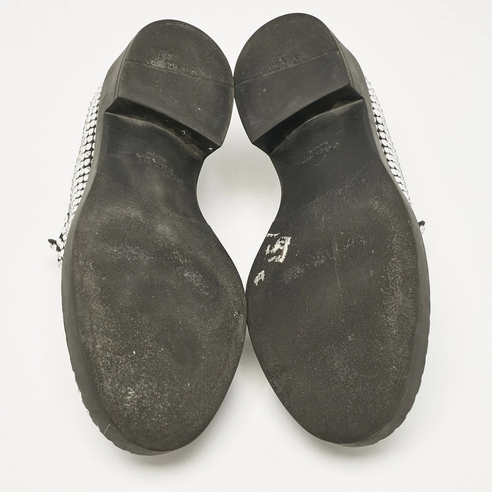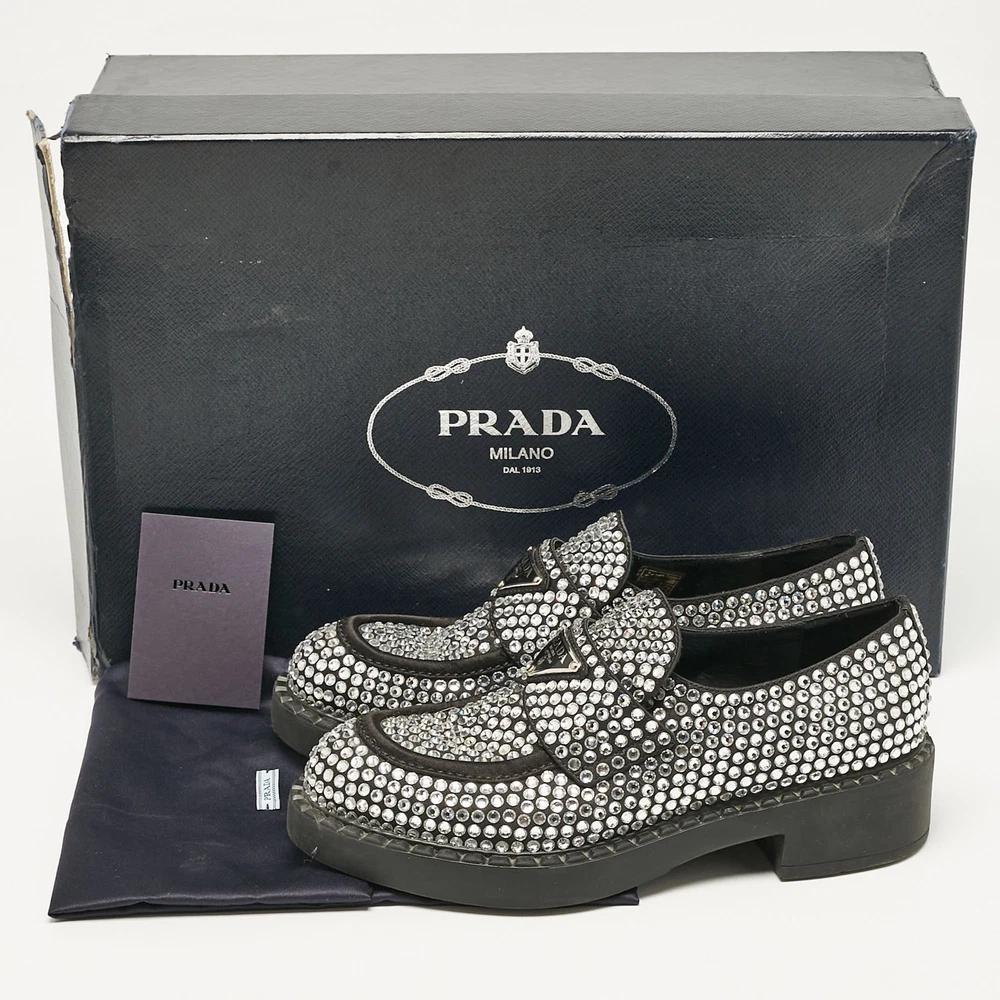 Indulge in the ultimate expression of elegance with these exquisitely crafted Prada slip ons. Made in Italy, the black satin loafers are adorned with sparkling crystals, offering a touch of glamor.Certified by The Luxury Closet - This item has gone through a detailed authentication process overseen by our experts. We offer a lifetime guarantee of authenticity on all our items. Import duties, taxes and charges are not included in the item price. These charges are the buyers responsibility. Please check with your country’s customs office to determine what these additional cost will be prior to buying. Our eBay Store About Us Contact Us Add to Favorite Sellers Prada Black Satin Crystals Slip On Loafers Size 36 $517 Indulge in the ultimate expression of elegance with these exquisitely crafted Prada slip ons. Made in Italy, the black satin loafers are adorned with sparkling crystals, offering a touch of glamor. Product Details Brand Color Black Dimensions Material Satin Size 36 Outsole Width 8 cm Outsole Length 26 cm Heel Height Includes Original Dustbag, Info Booklet, Original box damaged, Branded Box Certified by The Luxury Closet This item has gone through a detailed authentication process overseen by our experts. We offer a lifetime guarantee of authenticity on all our items. How We Check The in-house team of experts at The Luxury Closet is highly trained to verify the authenticity and the condition of the luxury products. They ensure that only 100% authentic items are put on sale.The evaluation process is unique with its own mix of assessment criteria and differs according to the category. Each item is evaluated based on the following combination of hallmarks, hardware, stitching, symmetry, material, craftsmanship, stamping, codes, hologram stickers, and packaging. Our authenticators also check if the items have been modified or amended (e.g., aftermarket diamonds, replaced batteries, repaired bags, etc.) International Buyers Import duties, taxes and charges are not included in the item price. These charges are the buyers responsibility. Please check with your country’s customs office to determine what these additional cost will be prior to buying.