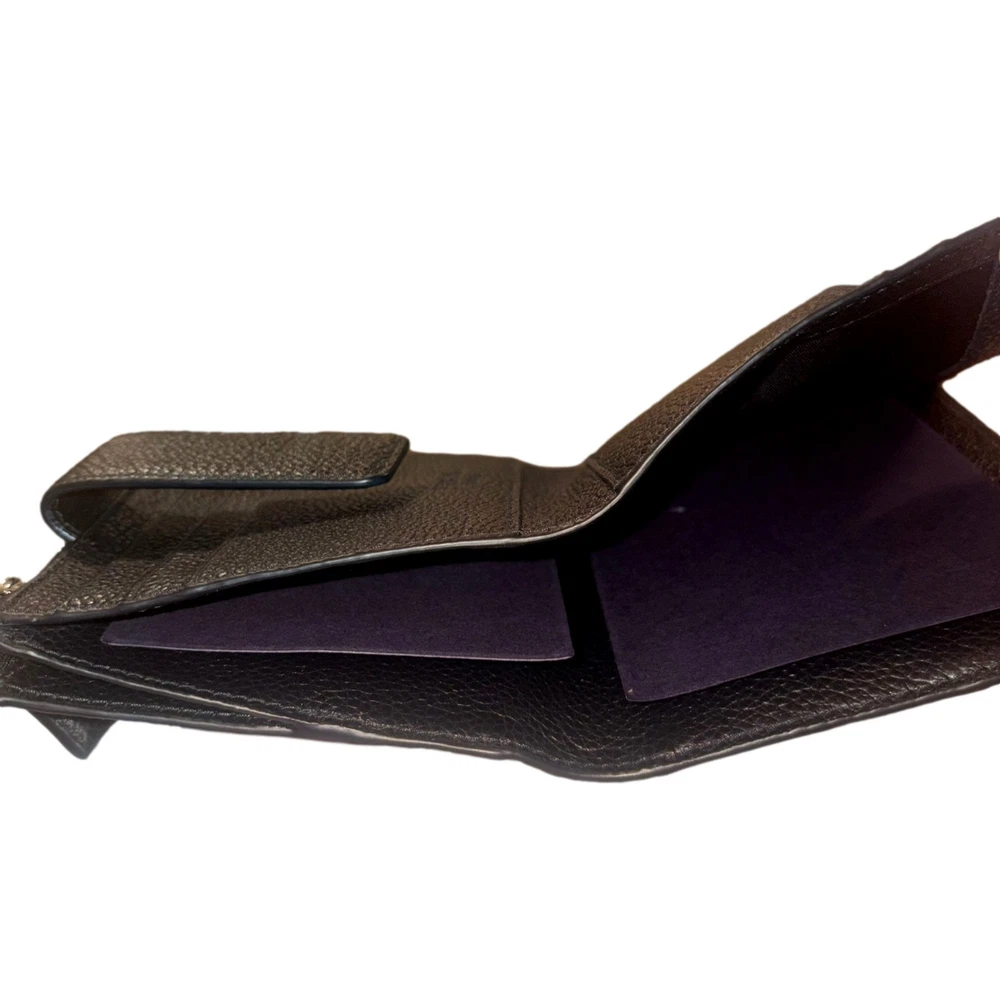 Refined, versatile, and impeccably designed, this Prada Vitello Micro Grain Wallet in classic black is the epitome of understated luxury. Crafted from supple, richly textured Vitello leather, its sleek silhouette is elevated by the instantly recognizable Prada Triangle Logo, a symbol of heritage and prestige. Secured with a sophisticated snap closure, this bifold design unveils a meticulously organized interior—featuring six precision-cut card slots, a spacious full-length bill compartment, and 3 exterior card slots. For added convenience, a top-zip coin pouch offers secure storage for loose change. Elegant yet functional, compact yet spacious, this wallet is the perfect blend of modern utility and timeless Italian artistry. Whether tucked into a designer handbag or carried solo, it is the ultimate companion for the discerning individual who appreciates subtle opulence in their everyday essentials. Model: 2MC066 Black Vitello Micro Grain Leather Silver-tone Hardware Embossed Prada Logo Snap Closure 9 card slots 1 bill compartment Measurements: 4" x 0.5" x 3.5" (LWH) Includes Authenticity Cards and Prada Box Made in Italy
