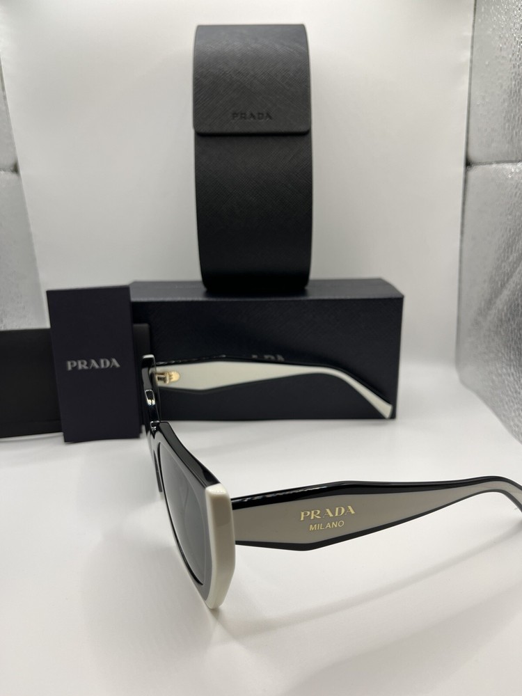 New Prada Oversized Cat Eye Sunglasses. Designed with geometric shaping. Full set includes case, box, and cleaning cloth. Lens width: 55mm Bridge width: 17mm Temple length: 145mm