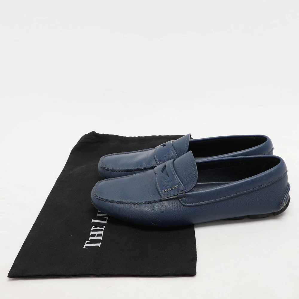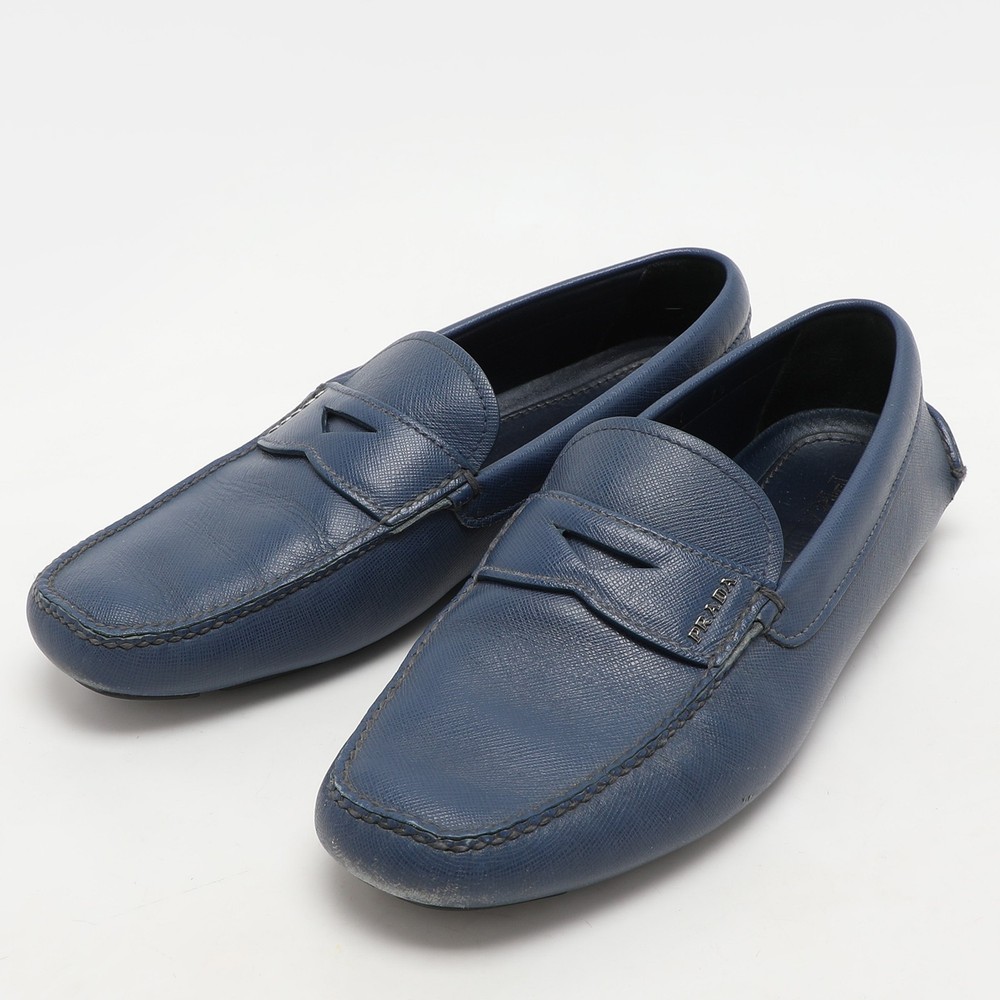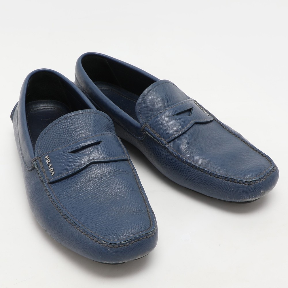These Prada penny loafers in signature blue Saffiano leather combine durability with timeless style. The slip on design and classy shape make them a great pick.Certified by The Luxury Closet - This item has gone through a detailed authentication process overseen by our experts. We offer a lifetime guarantee of authenticity on all our items. Import duties, taxes and charges are not included in the item price. These charges are the buyers responsibility. Please check with your country’s customs office to determine what these additional cost will be prior to buying. Our eBay Store About Us Contact Us Add to Favorite Sellers Prada Blue Saffiano Leather Penny Loafers Size 41.5 $150.7 These Prada penny loafers in signature blue Saffiano leather combine durability with timeless style. The slip on design and classy shape make them a great pick. Product Details Brand Color Blue Dimensions Material Leather Size 41.5 Outsole Width 10 cm Outsole Length 29 cm Heel Height Includes The Luxury Closet Packaging Certified by The Luxury Closet This item has gone through a detailed authentication process overseen by our experts. We offer a lifetime guarantee of authenticity on all our items. How We Check The in-house team of experts at The Luxury Closet is highly trained to verify the authenticity and the condition of the luxury products. They ensure that only 100% authentic items are put on sale.The evaluation process is unique with its own mix of assessment criteria and differs according to the category. Each item is evaluated based on the following combination of hallmarks, hardware, stitching, symmetry, material, craftsmanship, stamping, codes, hologram stickers, and packaging. Our authenticators also check if the items have been modified or amended (e.g., aftermarket diamonds, replaced batteries, repaired bags, etc.) International Buyers Import duties, taxes and charges are not included in the item price. These charges are the buyers responsibility. Please check with your country’s customs office to determine what these additional cost will be prior to buying.