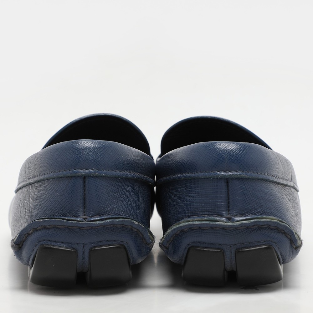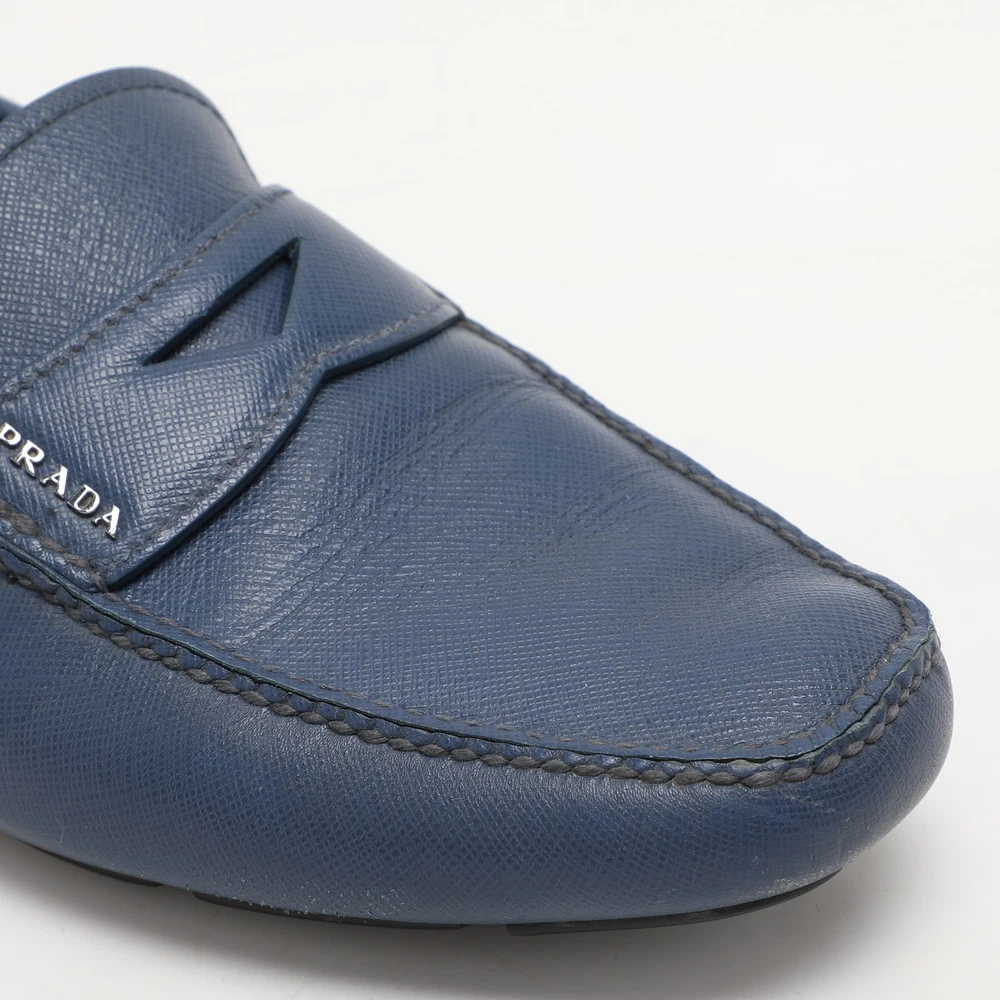 Prada Blue Saffiano Leather Penny Loafers Size 41.5