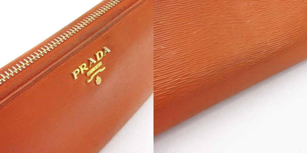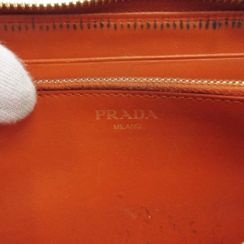 Prada L-Shaped Zipper Long Leather Wallet in Orange for Women Y0722