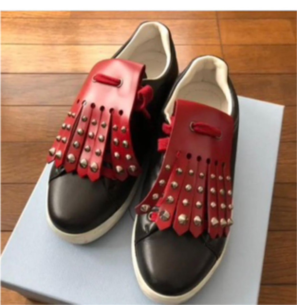 Prada Leather Sneakers Women 5.5US/37 UK 23.5cm with Box & Drawstring /Used Key Features Prada Leather Sneakers in Size 37 with Box, Shoe Case, and Drawstring Bag. These stylish sneakers feature a unique design with two types of embellishments: studs and plain. Made from high-quality leather, they are lightly used with minimal wear, mainly some scuffs on the white rubber parts. The sneakers are in excellent condition with few uses, perfect for fashion-forward individuals. The set includes the original box, shoe case, and a drawstring bag for storage or travel. A fashionable and versatile addition to your wardrobe, ideal for casual or chic occasions. Item Specifics: C:Exterior Material: Leather C:Style: Sneakers C:Exterior Color: Black C:Department: Women C:Product Line: Prada C:Handle/Strap Material: N/A C:Lining Color: Black C:Lining Material: Leather C:Handle/Strap Color: N/A C:Size: 37 C:Hardware Color: Silver Specifications Brand Prada Country Japan US Shoe Size 5.5 Department Woman UK Shoe Size 5 EU Shoe Size 37 JP Shoe Size 23.5 Product Description Item Title Men 5.5US Prada Leather Sneakers Payment Supports managed payments Please pay within 5 days after auction is finished. About Us We are located in Japan. It's our pleasure to make you happy by proposing our recommend item. If you have any questions or request about items, please feel free to ask us. International Buyers - Please Note: -Import duties, taxes, and charges are not included in the item price or shipping charges. These charges are the buyer's responsibility. -Please check with your country's customs office to determine what these additional costs will be prior to bidding/buying. -These charges are normally collected by the delivering freight (shipping) company or when you pick the item up - do not confuse them for additional shipping charges. -We do not mark merchandise values below value or mark items as - gifts - The US and International government regulations prohibit such behavior. Thank you for your understanding.