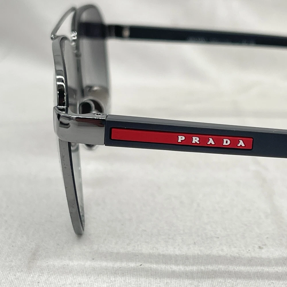 These Prada Linea Rossa aviators are sleek and stylish with a unique double bridge design. The gunmetal finish looks premium, and the gradient gray lenses give great sun protection. They don’t lay flat due to a minor defect, but otherwise, they’re in excellent condition—no scratches or damage. Comes with the original case and distressed packaging, making it a solid deal for designer shades. Perfect for anyone who wants high-end sunglasses at a fraction of the price!