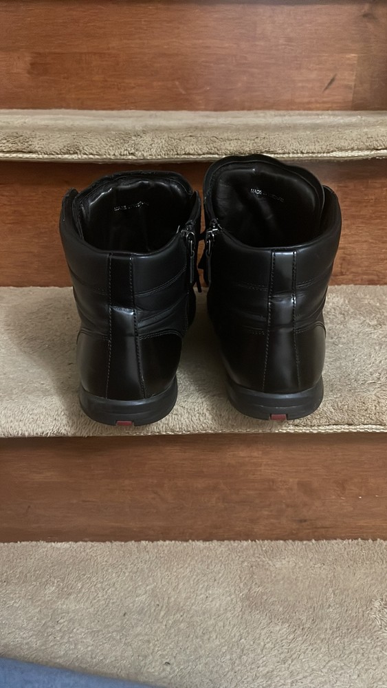 These Prada high-tops are a game-changer—luxurious leather, flawless stitching, and unbeatable comfort. The sleek black and red design adds a bold touch, while the ankle support makes them perfect for all-day wear. A must-have for any sneaker lover looking for premium quality and style.