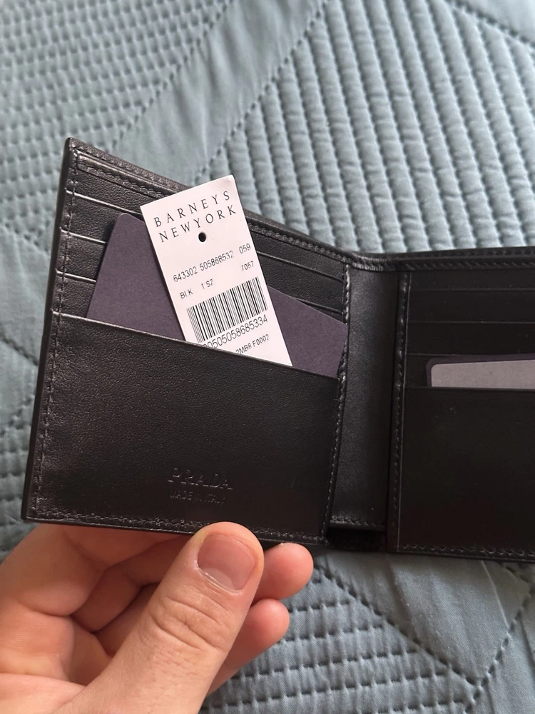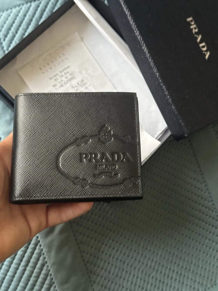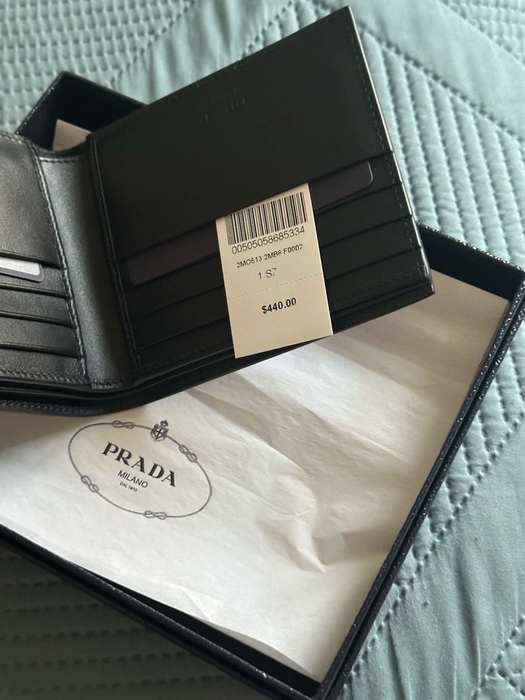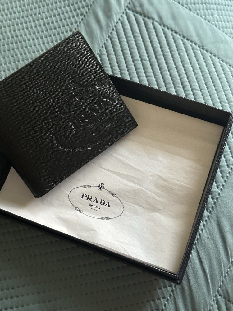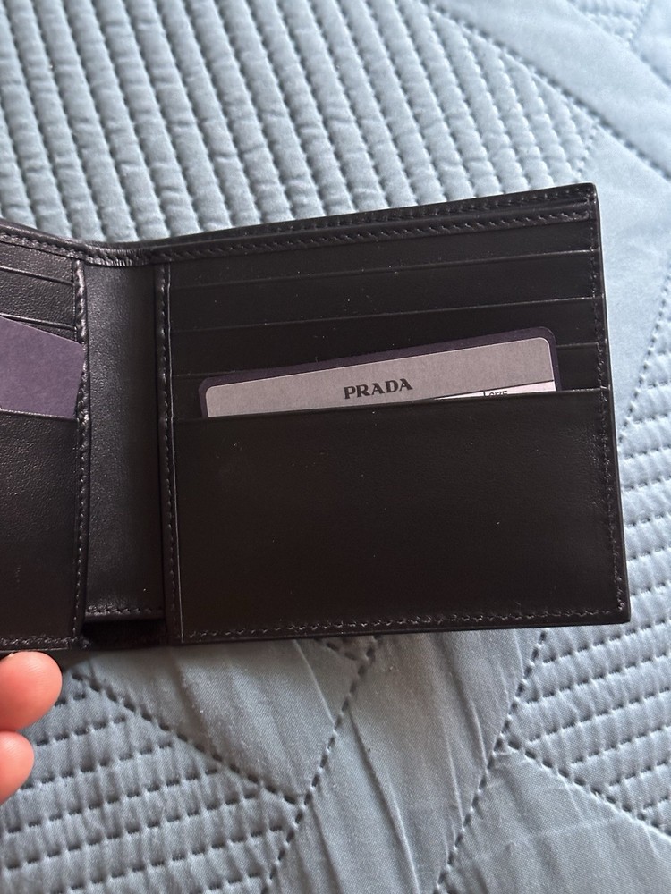 Material:LeatherColor:BlackVintage:NoPattern:SolidHandmade:NoPersonalize:NoStyle:BifoldAccents:LogoYear Manufactured:2020-2029Department:MenCountry/Region of Manufacture:ItalyType:WalletBrand:PRADA