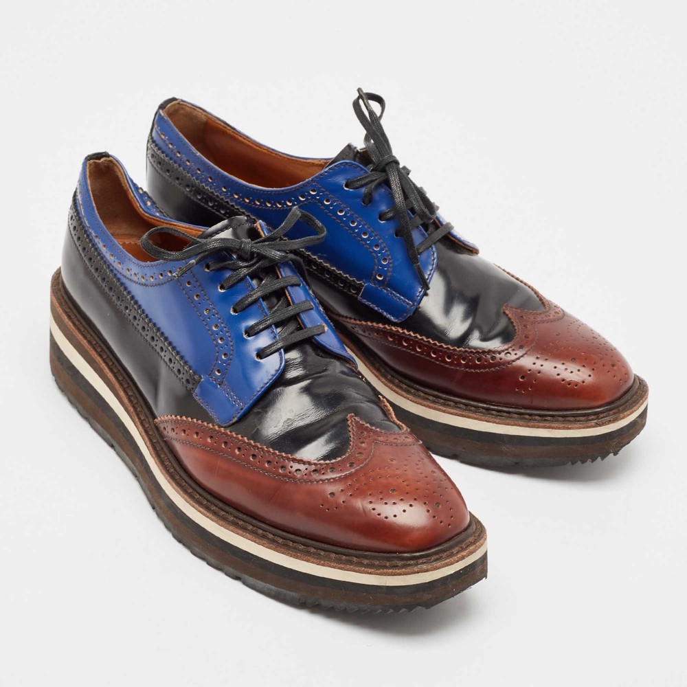 These womens shoes capture attention with their vibrant hues and meticulous craftsmanship, perfectly suited for those seeking luxury and sophistication. Elevate your wardrobe with these Prada shoes.Certified by The Luxury Closet - This item has gone through a detailed authentication process overseen by our experts. We offer a lifetime guarantee of authenticity on all our items. Import duties, taxes and charges are not included in the item price. These charges are the buyers responsibility. Please check with your country’s customs office to determine what these additional cost will be prior to buying. Our eBay Store About Us Contact Us Add to Favorite Sellers Prada Multicolor Leather Brogues Oxfords Size 38.5 $207.9 These womens shoes capture attention with their vibrant hues and meticulous craftsmanship, perfectly suited for those seeking luxury and sophistication. Elevate your wardrobe with these Prada shoes. Product Details Brand Color Multicolor Dimensions Material Leather Size 38.5 Outsole Width 8 cm Outsole Length 30 cm Heel Height Includes The Luxury Closet Packaging Certified by The Luxury Closet This item has gone through a detailed authentication process overseen by our experts. We offer a lifetime guarantee of authenticity on all our items. How We Check The in-house team of experts at The Luxury Closet is highly trained to verify the authenticity and the condition of the luxury products. They ensure that only 100% authentic items are put on sale.The evaluation process is unique with its own mix of assessment criteria and differs according to the category. Each item is evaluated based on the following combination of hallmarks, hardware, stitching, symmetry, material, craftsmanship, stamping, codes, hologram stickers, and packaging. Our authenticators also check if the items have been modified or amended (e.g., aftermarket diamonds, replaced batteries, repaired bags, etc.) International Buyers Import duties, taxes and charges are not included in the item price. These charges are the buyers responsibility. Please check with your country’s customs office to determine what these additional cost will be prior to buying.