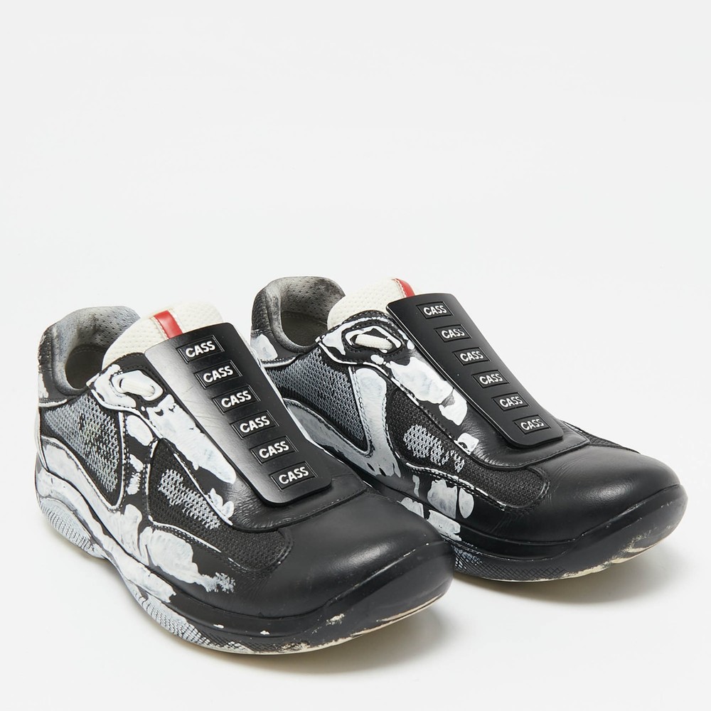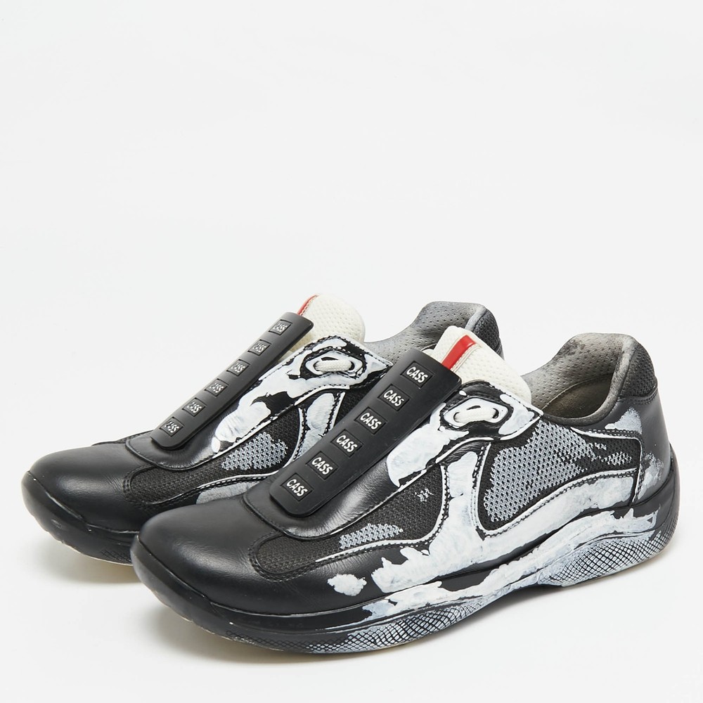 The Prada sneakers offer a vibrant blend of colors and materials, combining sleek leather with breathable mesh. The bold, sporty design is elevated with unique color blocking and subtle branding, making these sneakers perfect for those looking for something stylish yet functional.Certified by The Luxury Closet - This item has gone through a detailed authentication process overseen by our experts. We offer a lifetime guarantee of authenticity on all our items. Import duties, taxes and charges are not included in the item price. These charges are the buyers responsibility. Please check with your country’s customs office to determine what these additional cost will be prior to buying. Our eBay Store About Us Contact Us Add to Favorite Sellers Prada Multicolor Leather and Mesh America's Lace Up Sneakers Size 37.5 $451 The Prada sneakers offer a vibrant blend of colors and materials, combining sleek leather with breathable mesh. The bold, sporty design is elevated with unique color blocking and subtle branding, making these sneakers perfect for those looking for something stylish yet functional. Product Details Brand Color Multicolor Dimensions Material Leather, Mesh Size 37.5 Outsole Width 10 cm Outsole Length 30 cm Heel Height Includes The Luxury Closet Packaging Certified by The Luxury Closet This item has gone through a detailed authentication process overseen by our experts. We offer a lifetime guarantee of authenticity on all our items. How We Check The in-house team of experts at The Luxury Closet is highly trained to verify the authenticity and the condition of the luxury products. They ensure that only 100% authentic items are put on sale.The evaluation process is unique with its own mix of assessment criteria and differs according to the category. Each item is evaluated based on the following combination of hallmarks, hardware, stitching, symmetry, material, craftsmanship, stamping, codes, hologram stickers, and packaging. Our authenticators also check if the items have been modified or amended (e.g., aftermarket diamonds, replaced batteries, repaired bags, etc.) International Buyers Import duties, taxes and charges are not included in the item price. These charges are the buyers responsibility. Please check with your country’s customs office to determine what these additional cost will be prior to buying.