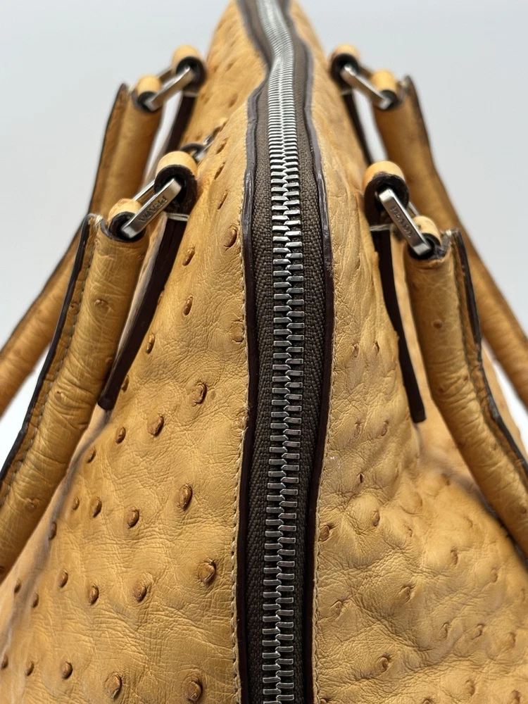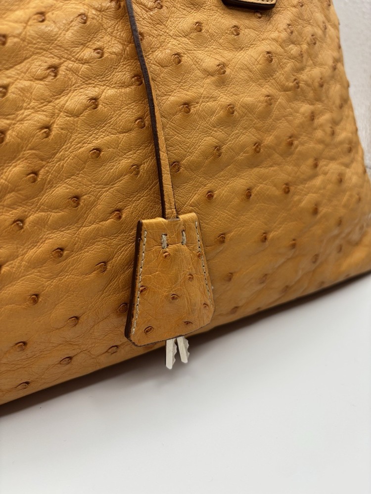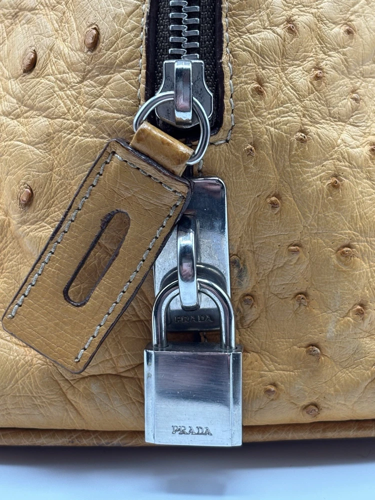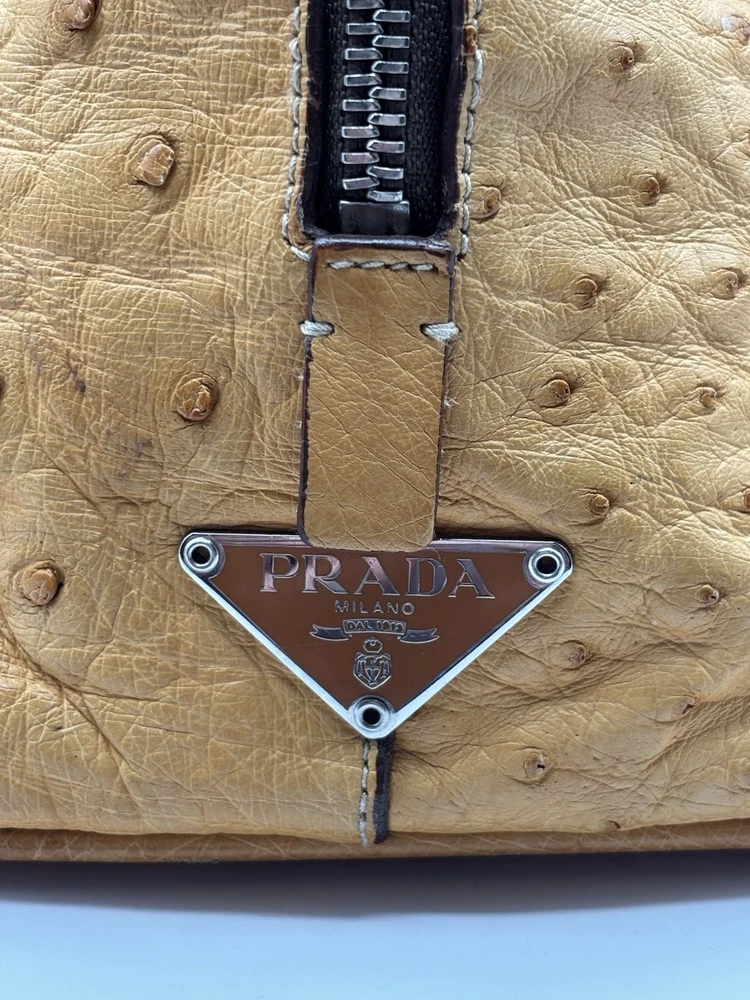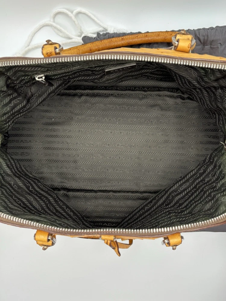 Add a touch of elegance to your wardrobe with this unique mustard yellow Prada handbag. Perfect for any occasion, it combines style, luxury, and functionality. Comes with dust bag, clochette, lock, and 2 keys. NOTE: the edge finishing is typically first to break down.