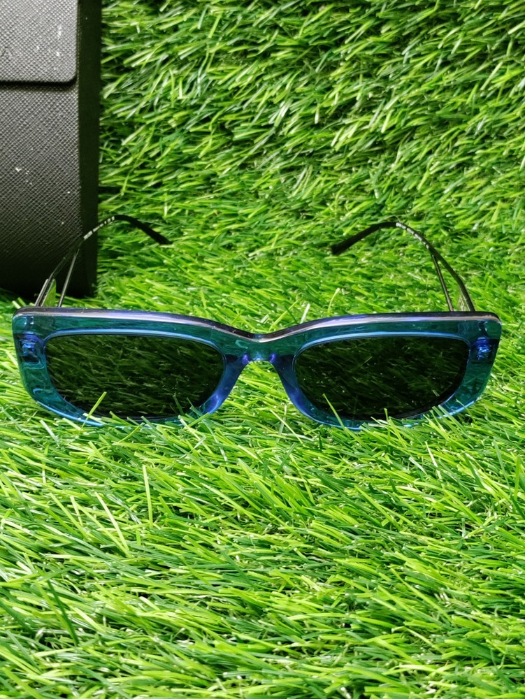 Has some wear. These are PRADA sunglasses in a geometric style with a frame color of Crystal Electric Blue and dark grey lenses. The model number is PR14YS-18M5S0-53, made of plastic in Italy. The sunglasses are unisex. Please check pictures for condition. We do our best to assure that you receive your order correctly and promptly but sometimes we can make an honest mistake, please contact us directly if you are not satisfied with your order for any reason. If your order is not as described we will cover all the return shipping costs and issue a prompt refund once it is receive. All items must be sent back in their original condition with all parts or pieces along with the original packaging. If any order is sent back and is as described and there is nothing wrong with it, not in the original packaging or missing parts or pieces, you will be responsible to pay the return shipping costs and there will be a 35% restocking fee to help recoup some of the original shipping and handling costs, Ebay and Paypal fees no exceptions