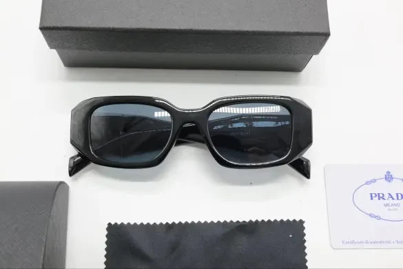 Elevate your style with these authentic Prada PR17WS 1AB5S049 sunglasses, designed for the modern woman. The sleek black plastic frame provides a classic look that complements any outfit, while the gray lenses offer a versatile hue that's easy to pair with a range of colors and styles.As a testament to their quality, these sunglasses come with tags ensuring you receive a genuine Prada product. The timeless rectangle shape flatters various face shapes and instantly enhances your outdoor ensemble, making them a must-have accessory for any fashion-conscious individual.