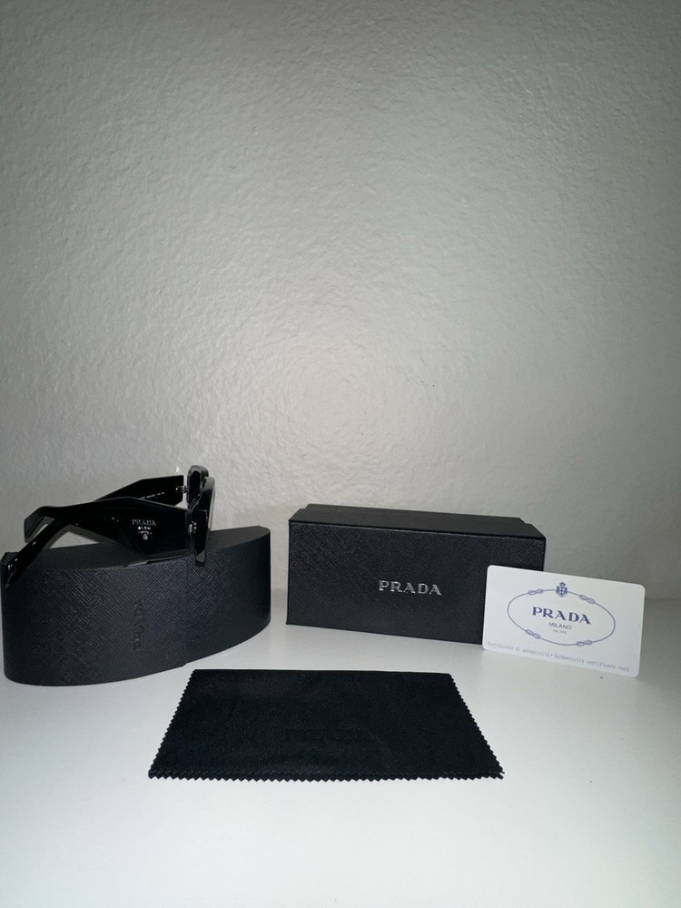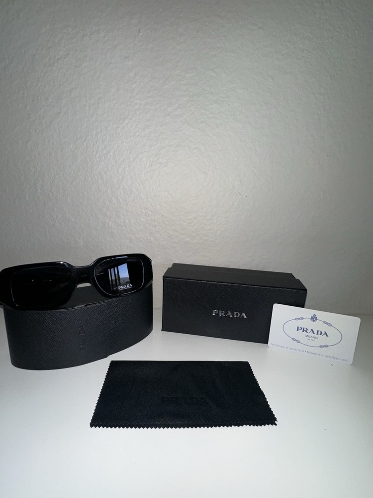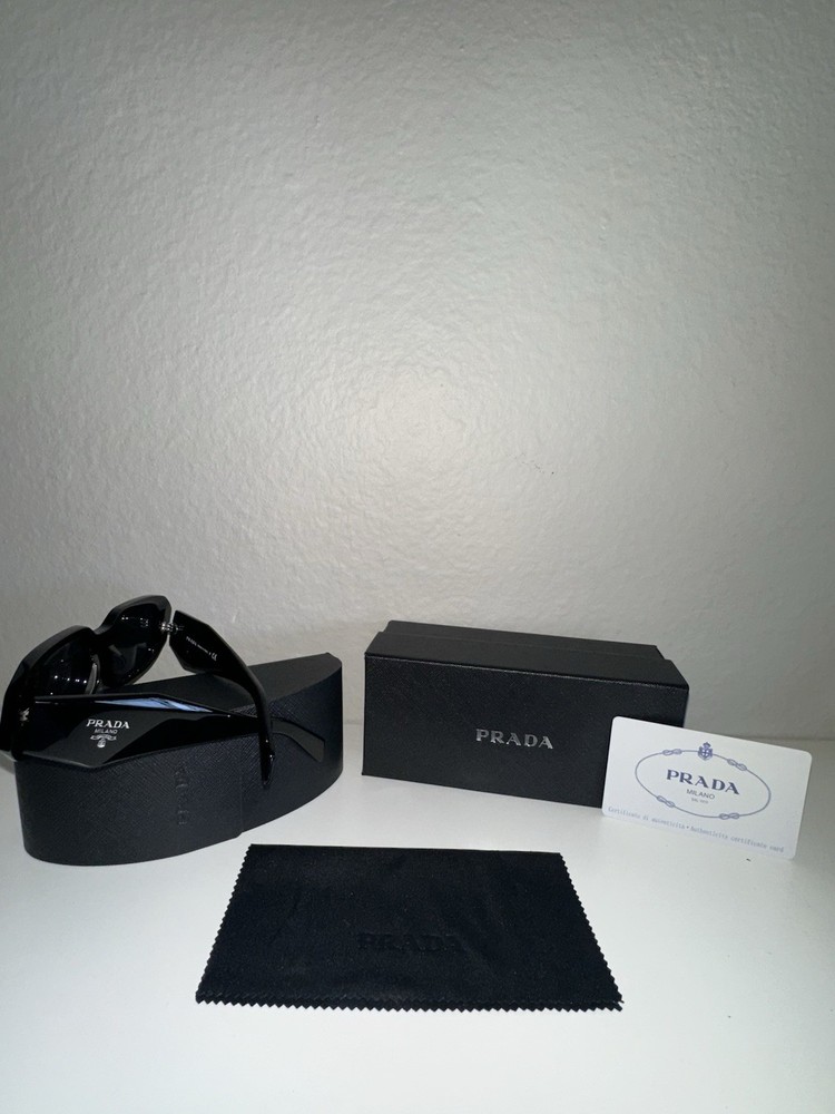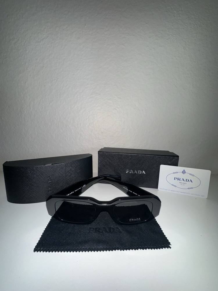 The Prada PR17WS 1AB5S049 Women's Sunglasses feature a sleek black frame with dark grey lenses, offering both style and UV protection. These designer sunglasses feature anti-reflective technology and are made with high-quality plastic material. The rectangle shape and unisex adults department make them a versatile and fashionable choice for anyone looking to elevate their accessory game.