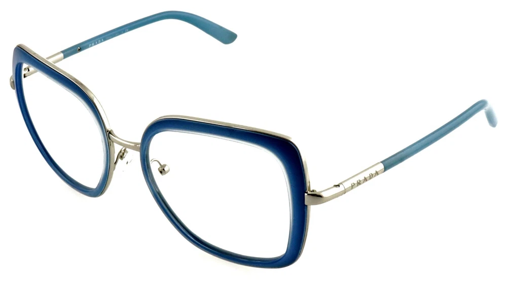 PRADA Model: SPR59M 1BC-3M1 Size: 55mm 55-19-135 Frame Color: Blue, Silver Frame Material: Acetate, Metal Made in Italy excellent condition. frames only no demo lenses