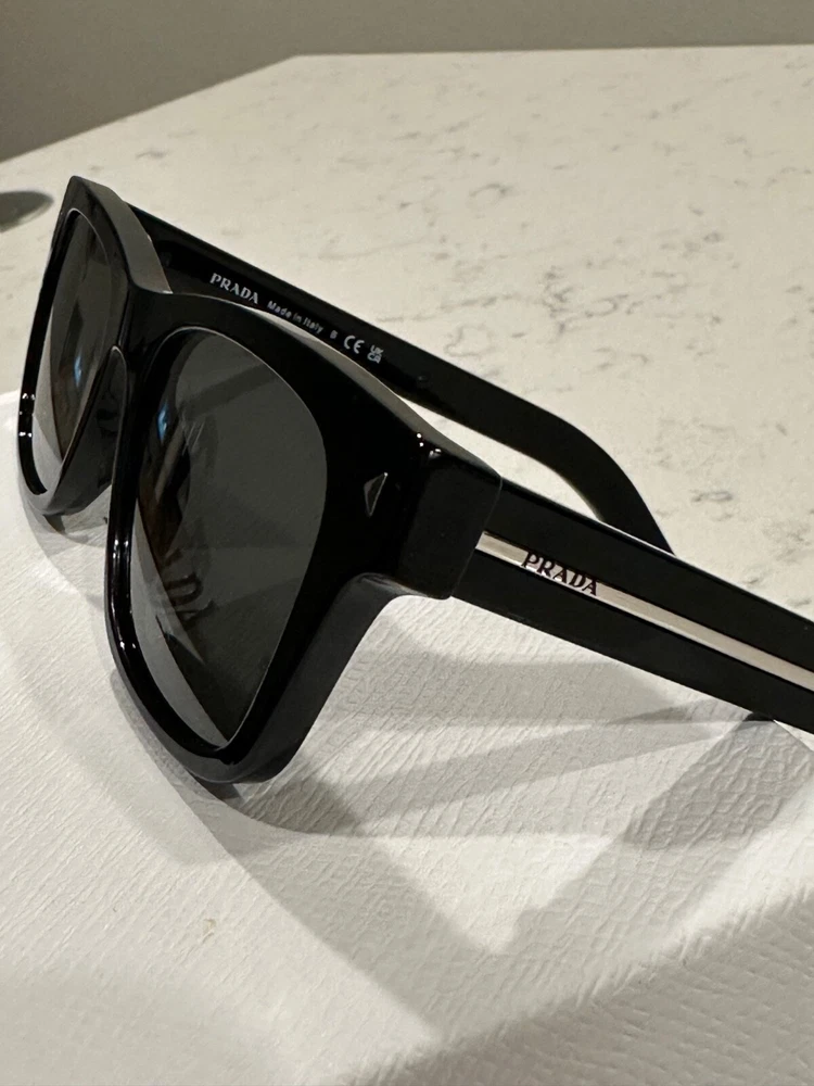 These Prada sunglasses are absolutely stunning! The sleek black frame and grey glass lenses give them a high-end, timeless look. The glass lenses are ultra-clear and durable, way better than plastic. They fit comfortably on wider faces and feel luxurious. For brand-new, unworn Pradas at this price, it's a steal—total luxury without the boutique markup!