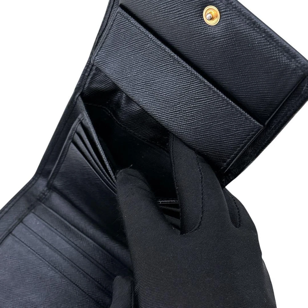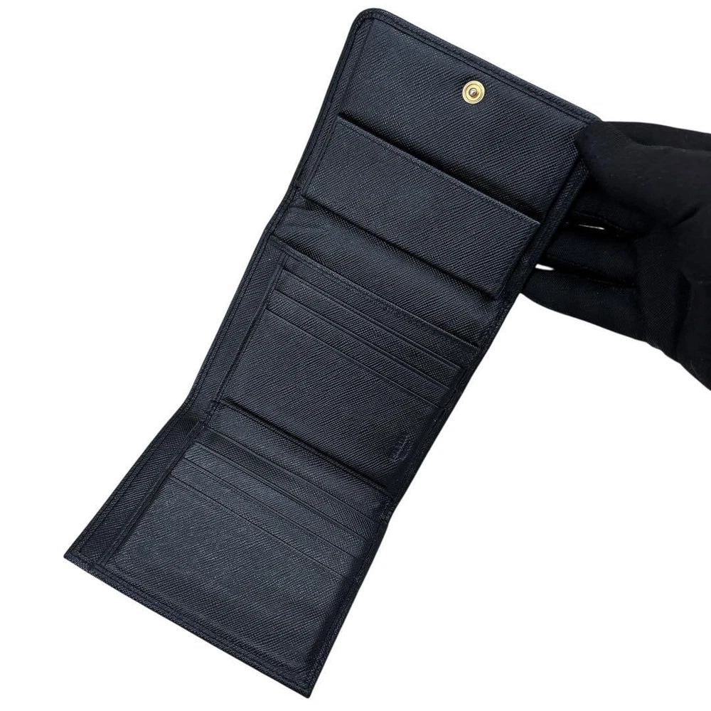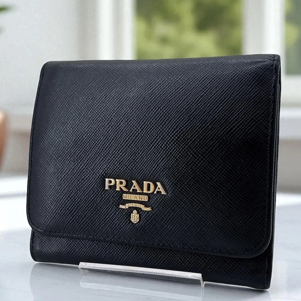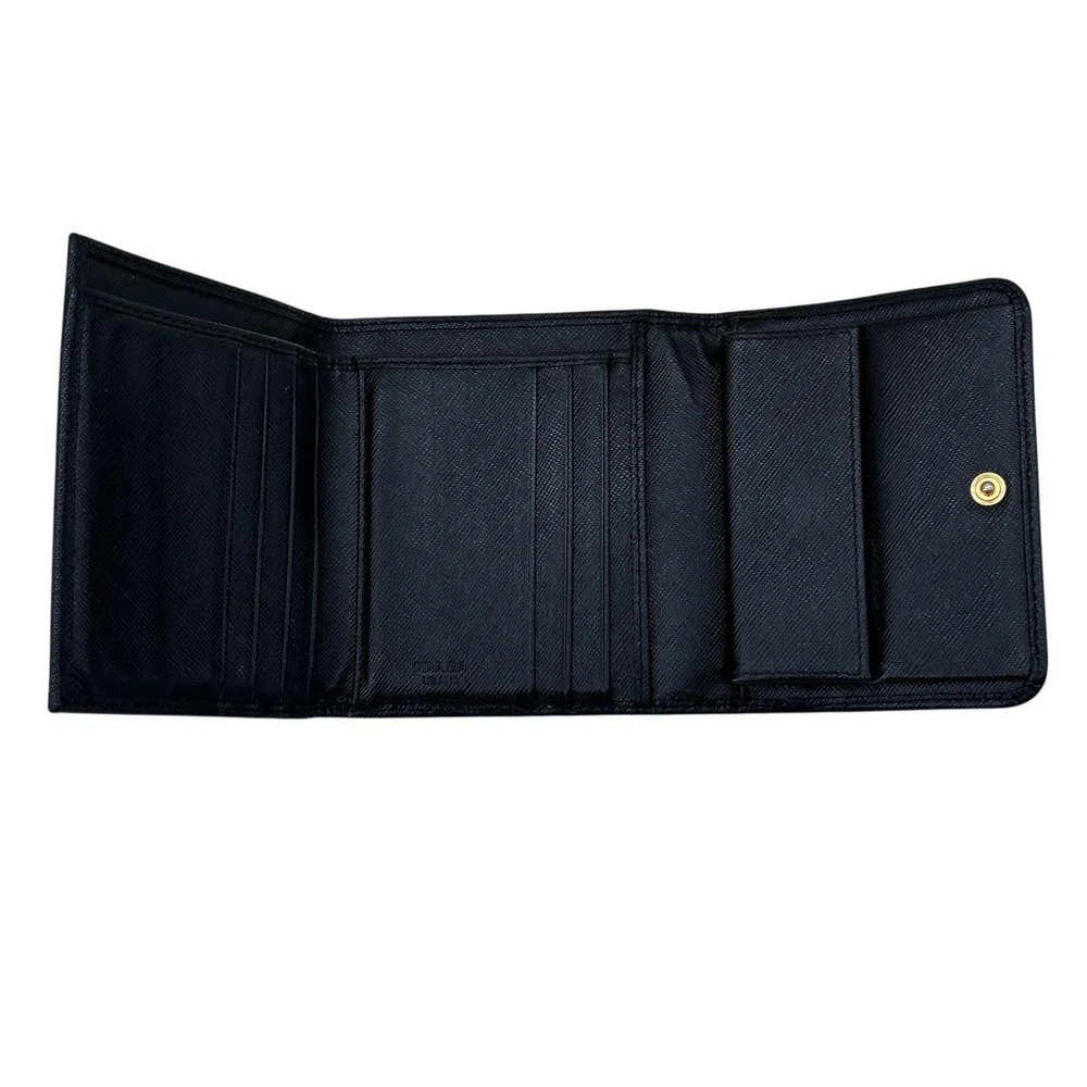 Prada Saffiano Black Leather Tri-Fold Wallet Compact Purse Used Key Features - Brand: Prada - Product Type: Leather Wallet - Model Number: 164 - Size: approximately 3.9 inches (10cm) height x 4.5 inches (11.5cm) width x 2 inches (5cm) depth - Material: Genuine leather (black) - Condition: S (Excellent; no noticeable scratches or stains, very clean) - Notes: Authentic product verified and inspected in Japan. No accessories are included unless noted in the title or product description. If you have any questions, please ask before purchasing. - Please review photos for detailed condition. - We handle genuine products only; in case of counterfeit, we offer returns or exchanges. Specifications Brand Prada Country Japan Color Black Material Leather Product Description Item Title Prada/Saffiano/Tri-Fold Wallet/Compact Wallet/Leather/Black Payment Supports managed payments Please pay within 5 days after auction is finished. About Us We are located in Japan. It's our pleasure to make you happy by proposing our recommend item. If you have any questions or request about items, please feel free to ask us. International Buyers - Please Note: -Import duties, taxes, and charges are not included in the item price or shipping charges. These charges are the buyer's responsibility. -Please check with your country's customs office to determine what these additional costs will be prior to bidding/buying. -These charges are normally collected by the delivering freight (shipping) company or when you pick the item up - do not confuse them for additional shipping charges. -We do not mark merchandise values below value or mark items as - gifts - The US and International government regulations prohibit such behavior. Thank you for your understanding.